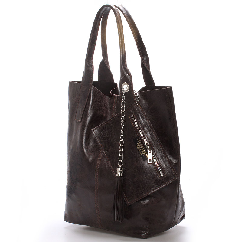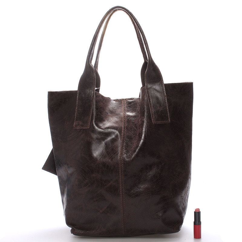 Dámska veľká kožená kabelka shopper hnedá - ItalY Perla