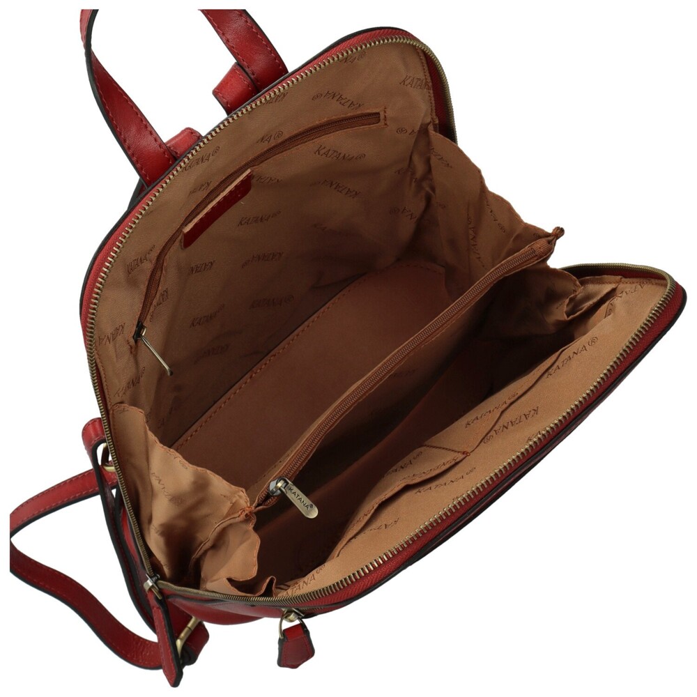 Dámsky kožený batoh Katana je symbolom elegancie v jednoduchom, nadčasovom prevedení. Je vyrobený z kvalitnej, pevnej kože, ktorá si uchováva svoj tvar aj po rokoch nosenia. Jemný lesk materiálu a precízne prešívanie dodávajú batohu luxusný vzhľad s francúzskym nádychom. Vnútri hlavného vrecka na zips nájdete prehľadné usporiadanie s vreckami v podšívke a stredovú zipsovú priehradku, ktorá priestor prakticky rozdeľuje. Na prednej strane sa nachádza decentné logo značky Katana a elegantné vypuklé vrecko na zips, zatiaľ čo zadné zipsové vrecko poskytne bezpečné miesto pre cennosti. Na pohodlné nosenie má batoh pevné kožené ucho a nastaviteľné popruhy, ktoré sa prispôsobia vašej postave. Mosadzné kovanie podčiarkuje jeho vycibrený charakter. Ideálna voľba pre ženy, ktoré chcú vyzerať štýlovo, a pritom mať všetko prehľadne usporiadané. Objednajte ešte dnes a vyskúšajte, vrátiť ho môžete až do 30 dní!
