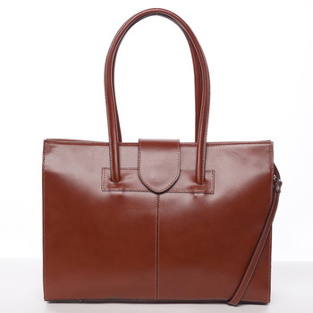 Elegantná a módna dámska kožená kabelka svetlo hnedá - ItalY Alison