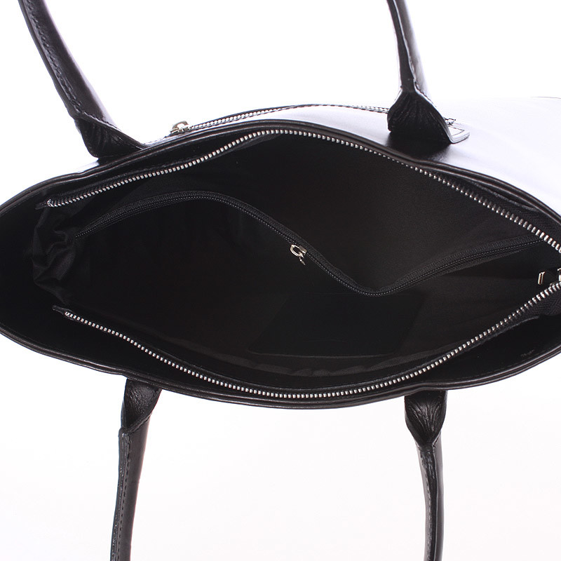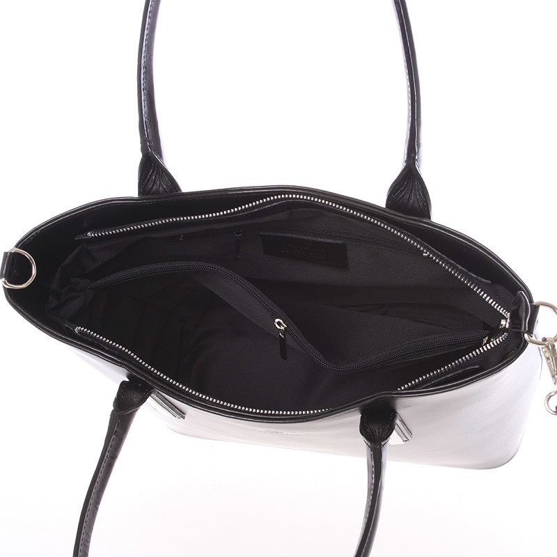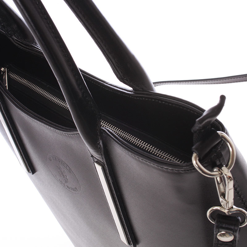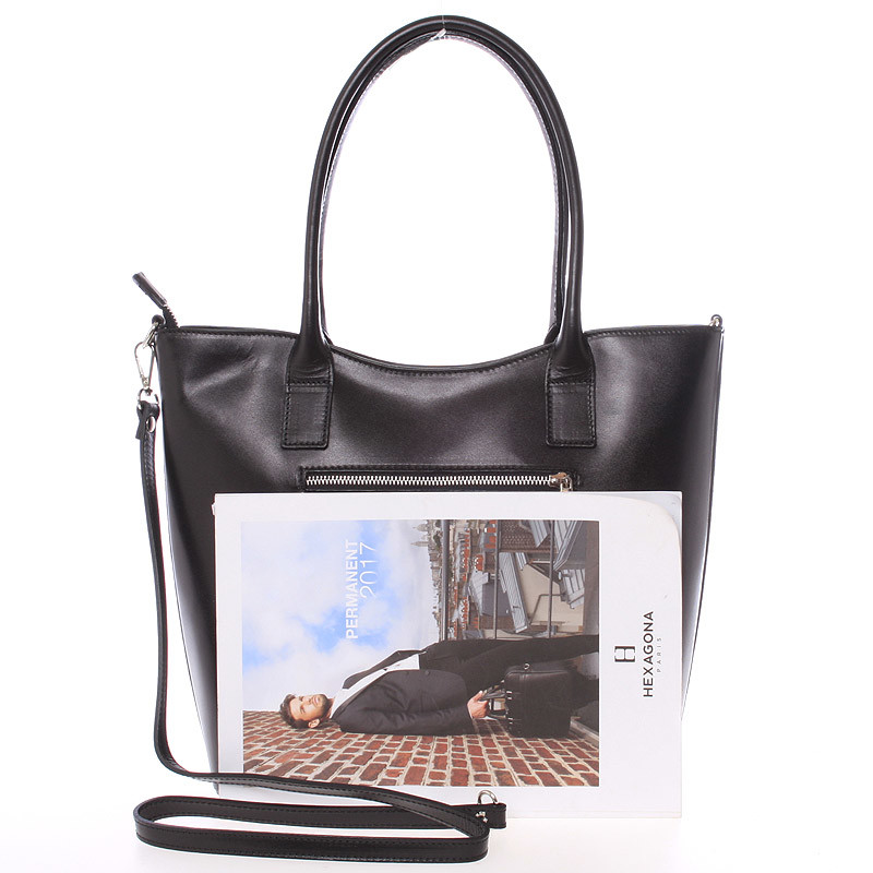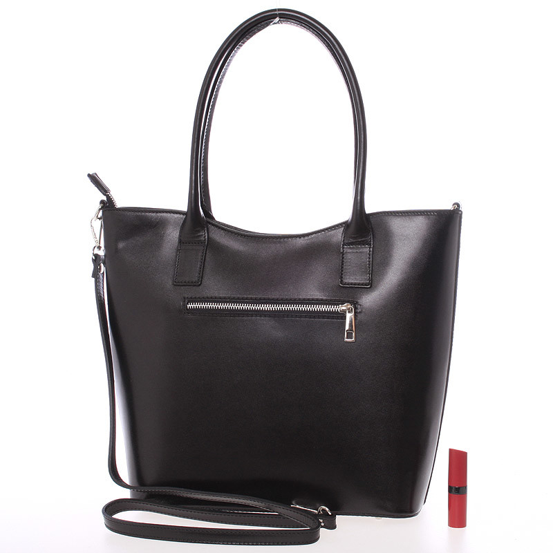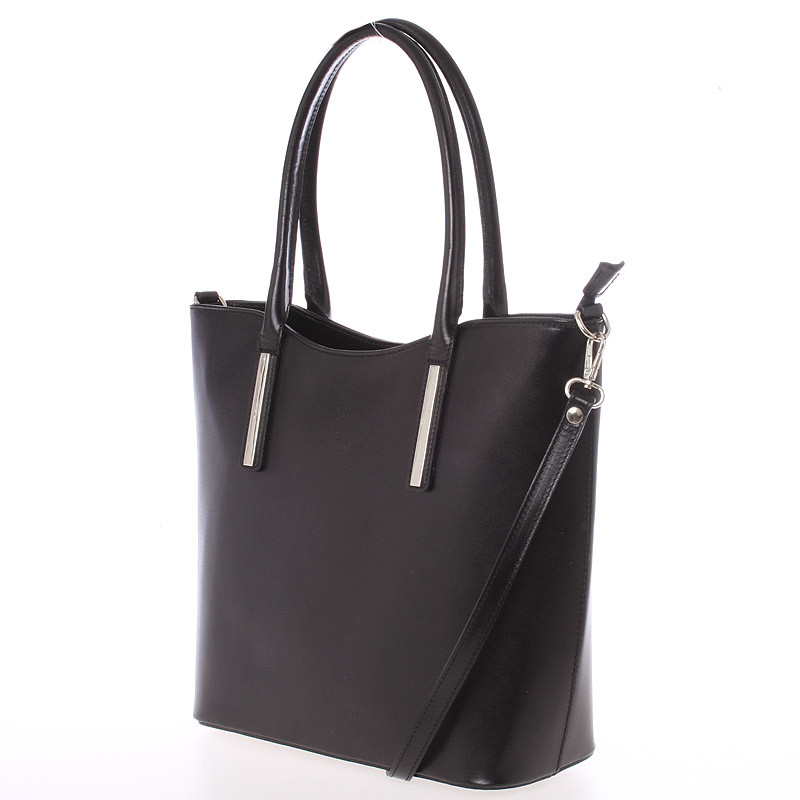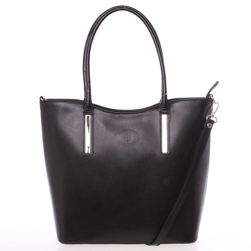 Jednoduchý dizajn tejto čiernej kabelky potvrdzuje eleganciu výrobkov značky Italy. Táto veľká pevná kožená kabelka Vás môže sprevádzať každý deň. Hodí sa ako do spoločnosti, tak aj ako pravá ruka do práce a do mesta. Má ideálne dlhšie uši, ale aj odnímateľný popruh. Zatváranie je vyriešené zipsom. Vnútri sú dve veľké hlavné vrecká delené prepážkou so zipsom, použiteľné ako tretie vrecko. Na zadnej stene nájdete ako zvnútra, tak i zvonku kapsu so zipsom. Nechýba tu menšia voľná kapsička na menší telefón. Objednajte ešte dnes a vyskúšajte, vrátiť ju môžete až za 30 dní!