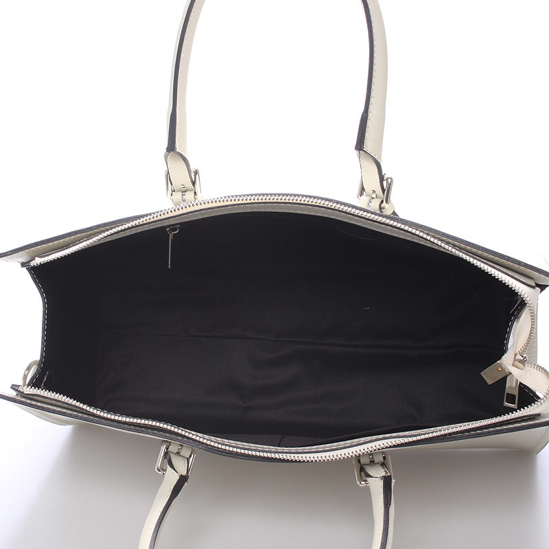 Elegantná krémová kožená kabelka do ruky ItalY je ďalšia z noviniek na našom eshope, ktorá svojím vzhľadom a spracovaním zaujme na prvý pohľad. Zatvára sa zipsom, je strednej veľkosti, pevná s pevným dnom, na ktorom sú zospodu cvočky proti poškriabaniu. Vnútri je priestranná a ďalej má vnútri ďalšie menšie vrecká na mobil a drobnosti. Na zadnej strane je tiež menšie vrecko na zips. Má odnímateľný remienok, takže ju možno nosiť aj cez rameno. Novinka. Objednajte ešte dnes a vyskúšajte, vrátiť ju môžete až do 30 dní!