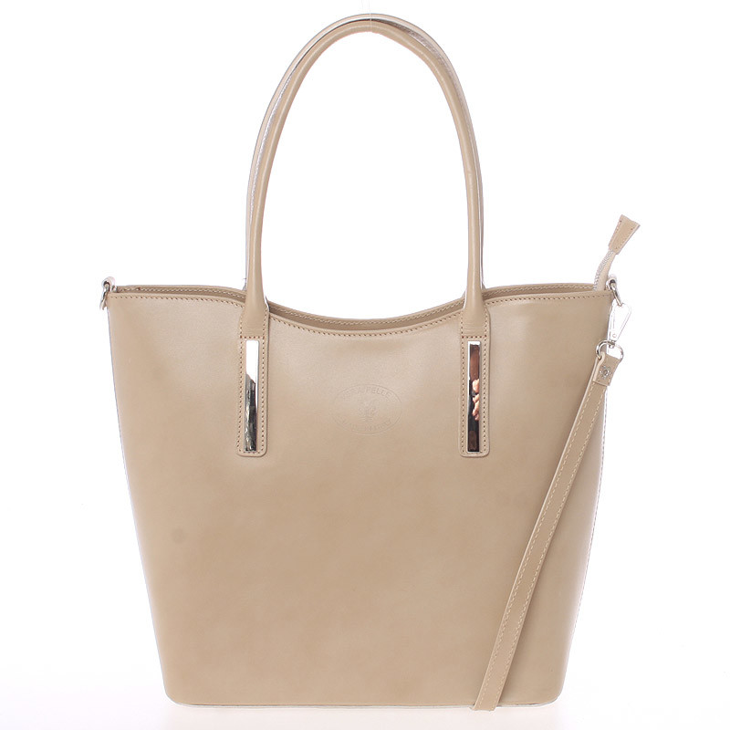 Elegantná tmavá béžová kožená kabelka cez rameno - ItalY Madeline