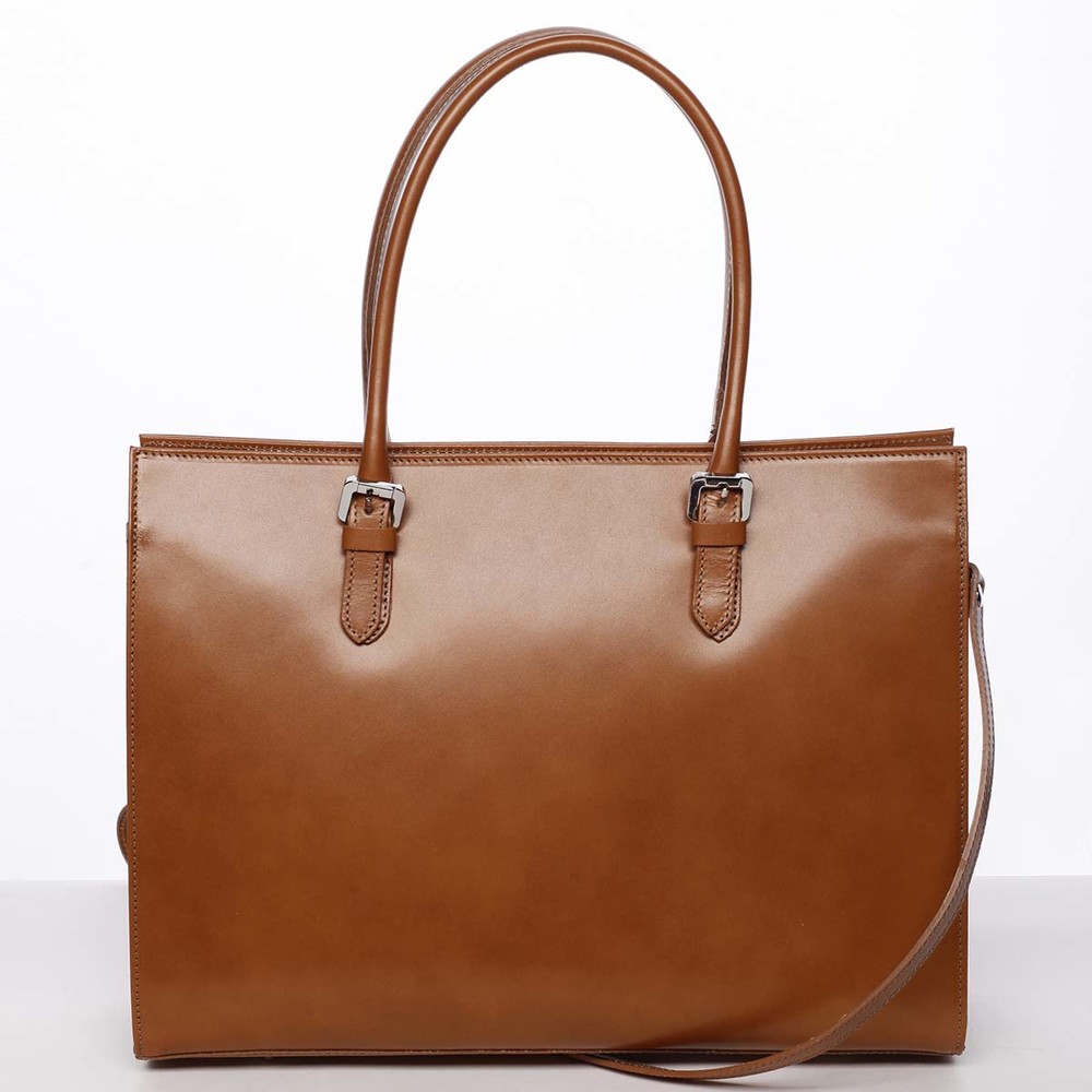 Moderná elegantná dámska kožená kabelka koňaková - ItalY Madelia