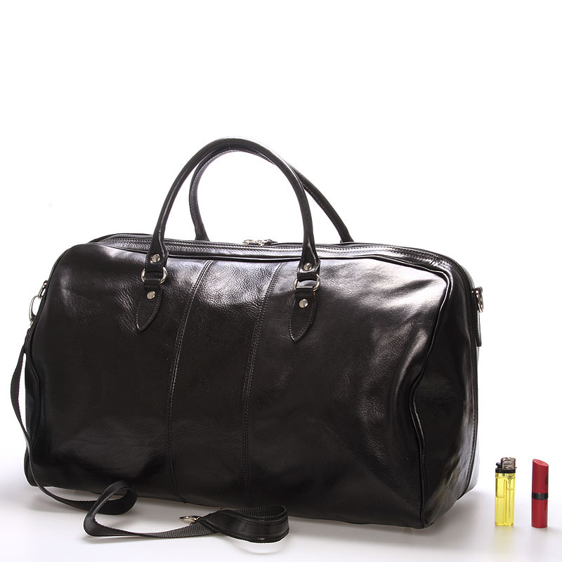 Veľká cestovná kožená taška čierna ItalY - Ella