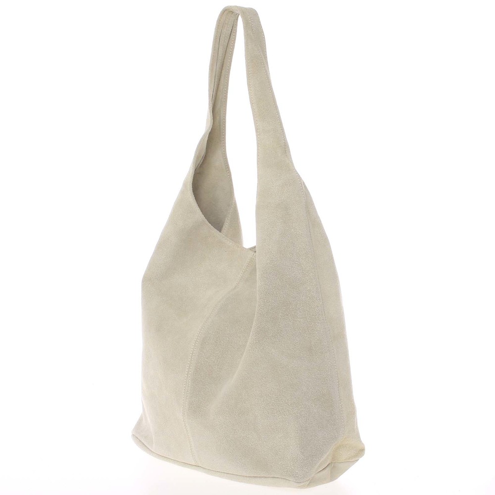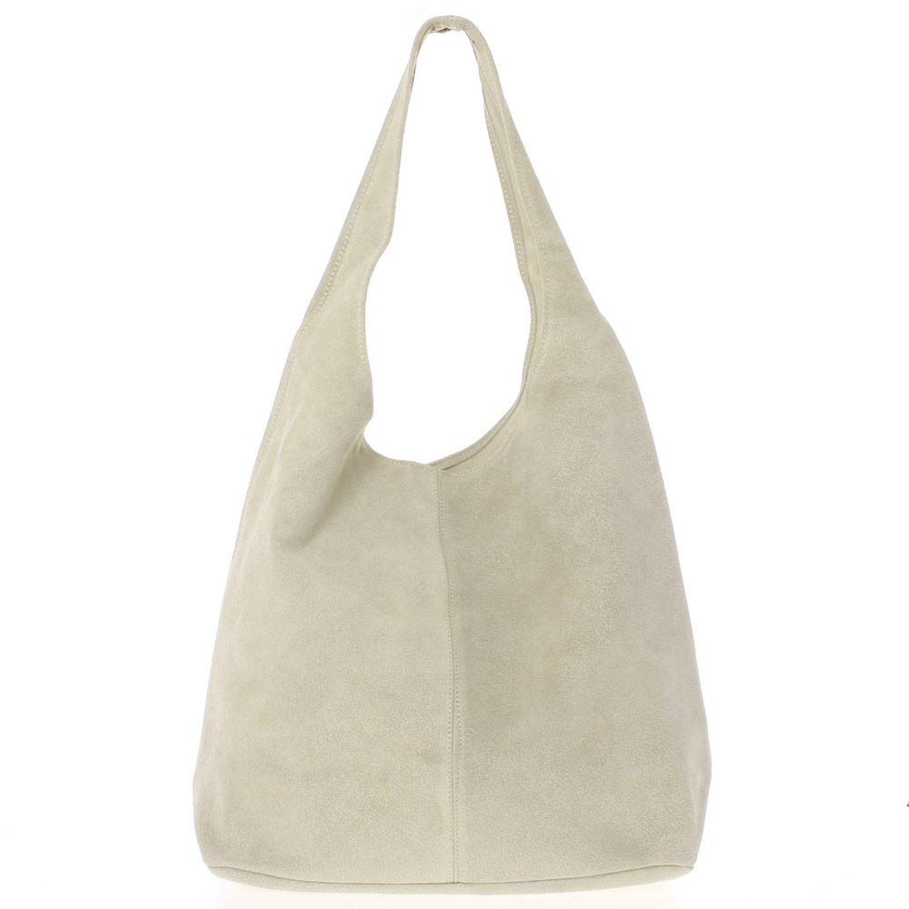 Veľká dámska kožená kabelka cez rameno svetlobéžová - ItalY Ocypete
