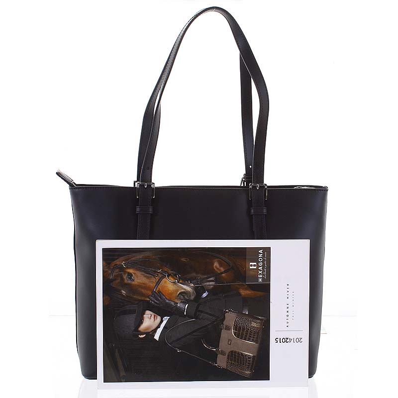 Veľká luxusná dámska kožená čierna kabelka cez rameno - Hexagona Zoie