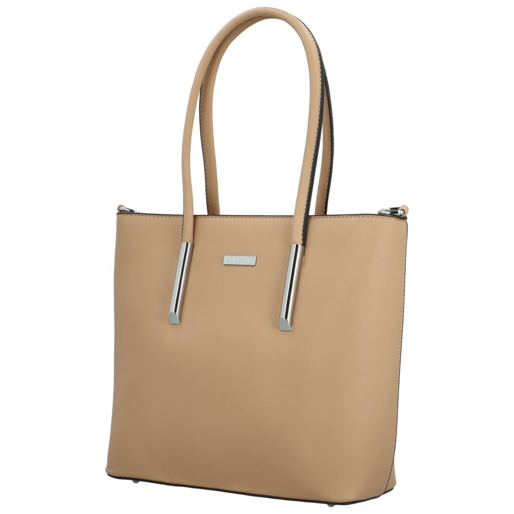 Či už sa s týmto kúskom vyberiete za prácou alebo za zábavou, budete vyzerať skvele. Kabelku v hladkom a pevnom prevedení navrhli českí dizajnéri s láskou a dali si záležať, aby zaujala aj náročné ženy. Vyrobená je z veľmi kvalitnej ekologickej kože, ktorá je odľahčená a tým sa stáva kabelka praktická a vhodná na každodenné nosenie do práce, mesta či do školy. Uši sú pevné, zaguľatené a čierne lemovanie im veľmi pristane. Ich kovové zakončenie a logo značky v striebornej farbe dominuje prednej strane. Hlavný priestor je prakticky rozdelený stredovým zipsovým vreckom a bočné menšie vrecká v podšívke zaistia poriadok vo vašej kabelke. Aj na zadnej strane nájdete menšie vrecko na zips. Pokiaľ chcete uvoľniť ruky, môžete pripnúť dlhý a nastaviteľný popruh, ktorý patrí ku kabelke a nosiť ju aj do kríža. Pristane vám vo všetkých prípadoch. Kabelku chránia kovové nožičky v spodnej časti, proti poškriabaniu či zašpineniu. Tento model zdôrazní váš jedinečný štýl a prinesie do vášho šatníka luxus a eleganciu. Objednajte ešte dnes a vyskúšajte, vrátiť ju môžete až do 30 dní!
