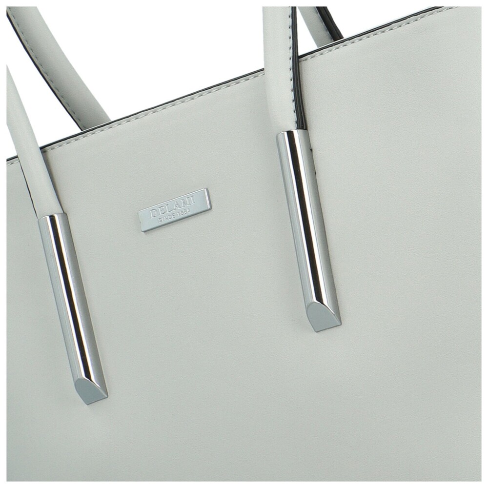 Či už sa s týmto kúskom vyberiete za prácou alebo za zábavou, budete vyzerať skvele. Kabelku v hladkom a pevnom prevedení navrhli českí dizajnéri s láskou a dali si záležať, aby zaujala aj náročné ženy. Vyrobená je z veľmi kvalitnej ekologickej kože, ktorá je odľahčená a tým sa stáva kabelka praktická a vhodná na každodenné nosenie do práce, mesta či do školy. Uši sú pevné, zaguľatené a čierne lemovanie im veľmi pristane. Ich kovové zakončenie a logo značky v striebornej farbe dominuje prednej strane. Hlavný priestor je prakticky rozdelený stredovým zipsovým vreckom a bočné menšie vrecká v podšívke zaistia poriadok vo vašej kabelke. Aj na zadnej strane nájdete menšie vrecko na zips. Pokiaľ chcete uvoľniť ruky, môžete pripnúť dlhý a nastaviteľný popruh, ktorý patrí ku kabelke a nosiť ju aj do kríža. Pristane vám vo všetkých prípadoch. Kabelku chránia kovové nožičky v spodnej časti, proti poškriabaniu či zašpineniu. Tento model zdôrazní váš jedinečný štýl a prinesie do vášho šatníka luxus a eleganciu. Objednajte ešte dnes a vyskúšajte, vrátiť ju môžete až do 30 dní!