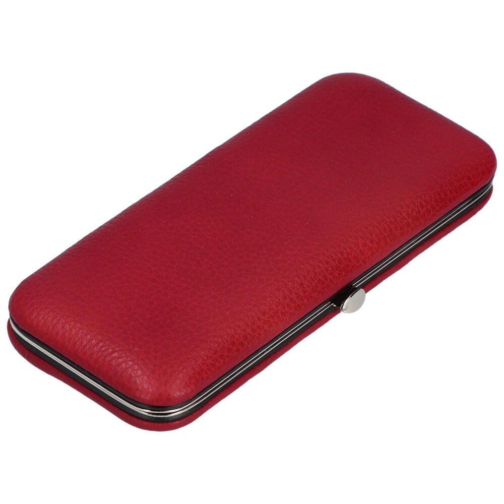 Objednajte ešte dnes elegantnú dámsku 5-dielnu sadu na manikúru , vrátiť ju môžete až za 30 dní! Urobte radosť sama sebe, mame alebo babičke. Toto krásne kožené puzdro v tmavo červenej farbe uvíta každá žena. Zapínanie je formou kovového patentu, ktorý stačí mierne stlačiť smerom dole. Nástroje vo vnútri sú kvalitné, značky Solingen. Výbava v puzdre sa skladá z dvoch nožníc na nechty v ohnutom prevedení (klasické a úzke), nechtového pilníčka s hnedým nástavcom, klasické pinzety a obojstranné špachtličky na nechty a nechtové lôžko, tá má tiež hnedý nástavec.