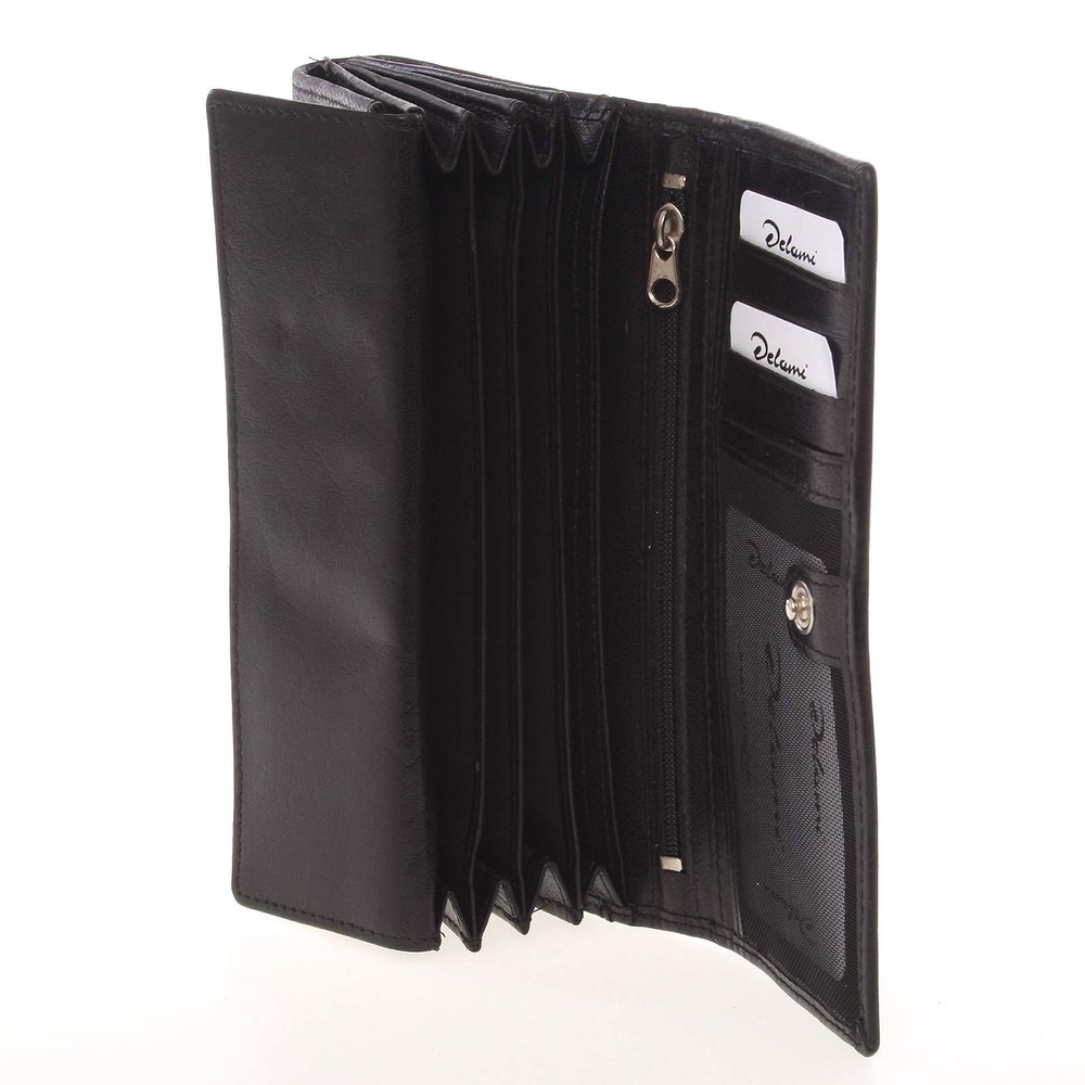 Kvalitná čierna dámska peňaženka Delami Vám iste urobí radosť a bude Vám dlho slúžiť. Obsahuje všetky potrebné priehradky na doklady, platobné karty, drobné mince aj papierové bankovky.