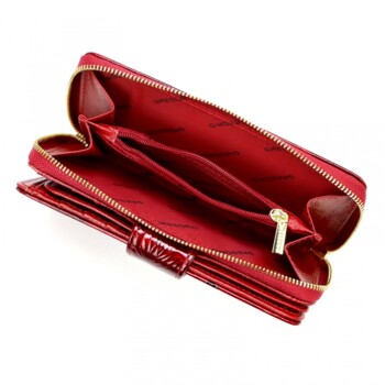 Luxusná a elegantná kožená peňaženka od značky Gregorio v strednej veľkosti z krásnej lakovanej kože. V prednej časti, ktorá sa otvára na cvok, nájdete množstvo priehradiek na vaše platobné karty a doklady, je tam aj priehradka na papierové peniaze rozdelená na dve. V druhej časti je vrecko na zips, na vaše kovové mince s malým vreckom uprostred. Krásna peňaženka s moderným designom, ktorá zanechá dojem. Na prednej strane logo značky v zlatej farbe. Peňaženka má RFID ochranu, proti nechcenému čítaniu platobných kariet. Dodávame v darčekovej krabičke. Objednajte ešte dnes a vyskúšajte, vrátiť ju môžete až do 30 dní!