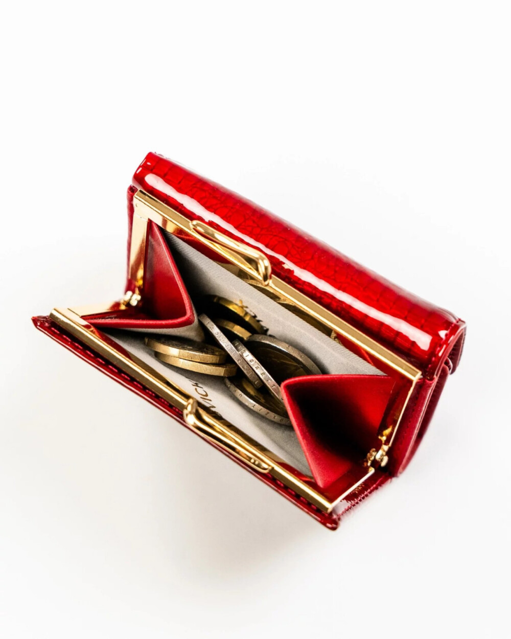 Táto mini kožená peňaženka Rovicky je ideálnou voľbou pre ženy, ktoré hľadajú štýlový doplnok v elegantnom prevedení. Na prvý pohľad zaujme lesklý štruktúrovaný povrch s efektom krokodílej kože a výrazným zlatým logom značky na klope, ktoré dodáva celému kúsku nádych luxusu. Po otvorení klopy nájdete prehľadne rozvrhnutý priestor určený pre platobné karty a zložené papierové bankovky. Praktickým prvkom je zadné vrecko na mince, uzatvárané kovovým rámčekom, ktorý umožňuje rýchle otvorenie aj pohodlné vyberanie drobných. Peňaženka je vybavená RFID ochranou, ktorá zabezpečí vaše karty pred neoprávneným skenovaním. Súčasťou je aj elegantná darčeková krabička. Objednajte ešte dnes a vyskúšajte, vrátiť ju môžete až za 30 dní!