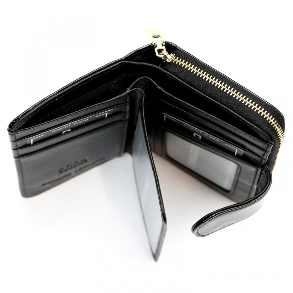 Peňaženka v trendy dizajne vyrobená z lakovanej kože, pôsobí luxusne na pohľad aj na dotyk s dostatkom priestoru pre vaše platobné karty. Po roztvorení klopy na cvok, ponúkne priestor na uloženie Vašich peňazí, dokladov i kariet. Na druhej strane je samostatná priehradka na zips na uloženie drobných mincí. Predný diel zdobí logo značky. Ideálne pre ženy, ktoré chcú mať všetko prehľadne usporiadané a zároveň v elegantnom štýle. Peňaženka sa dodáva v darčekovej krabičke. Objednajte ešte dnes a vyskúšajte, vrátiť ju môžete až do 30 dní!