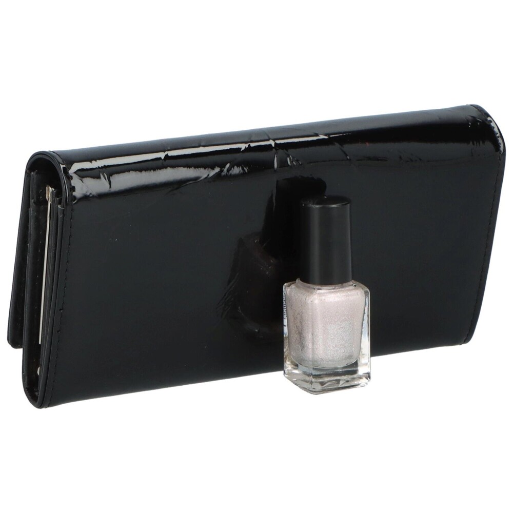 Veľká kožená peňaženka v luxusnom lakovanom prevedení zaujme na prvý pohľad jemným motívom vyrazených lístkov, ktorý jej dodáva elegantný a ženský charakter. Po otvorení klopy sa odhalí prehľadný interiér s dostatkom priestoru pre papierové bankovky aj platobné karty. Mince majú svoje miesto v praktickom vrecku s pevným kovovým rámčekom. Strieborné kovanie a strieborné logo značky na prednej strane podčiarkujú sofistikovaný vzhľad peňaženky. Dodáva sa v darčekovej krabičke, takže je ideálny aj ako štýlový darček. Objednajte ešte dnes a vyskúšajte, vrátiť ju môžete až za 30 dní!