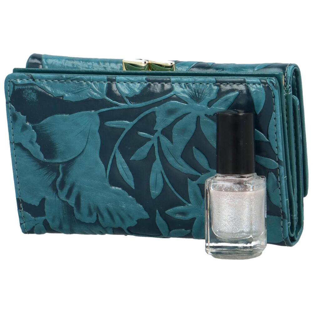 Módna peňaženka v modrej farbe s kvetinovým dizajnom a zlatými doplnkami. Vnútro peňaženky obsahuje mnoho vreciek na kreditné karty a doklady. Na bočnej strane má peňaženka priehradku na drobné v kovovom rámčeku a navyše pri ďalšom roztvorení ponúka peňaženka ďalšie priehradky na karty a doklady. Je veľmi pohodlná na nosenie a skvele sa hodí na každý deň. Peňaženka má RFID ochranu, teda má zabudovanú fóliu proti čítaniu platobných kariet. Dodávame v darčekovej krabičke. Tak objednajte ešte dnes a vyskúšajte! Vrátiť ju môžete do 30 dní.