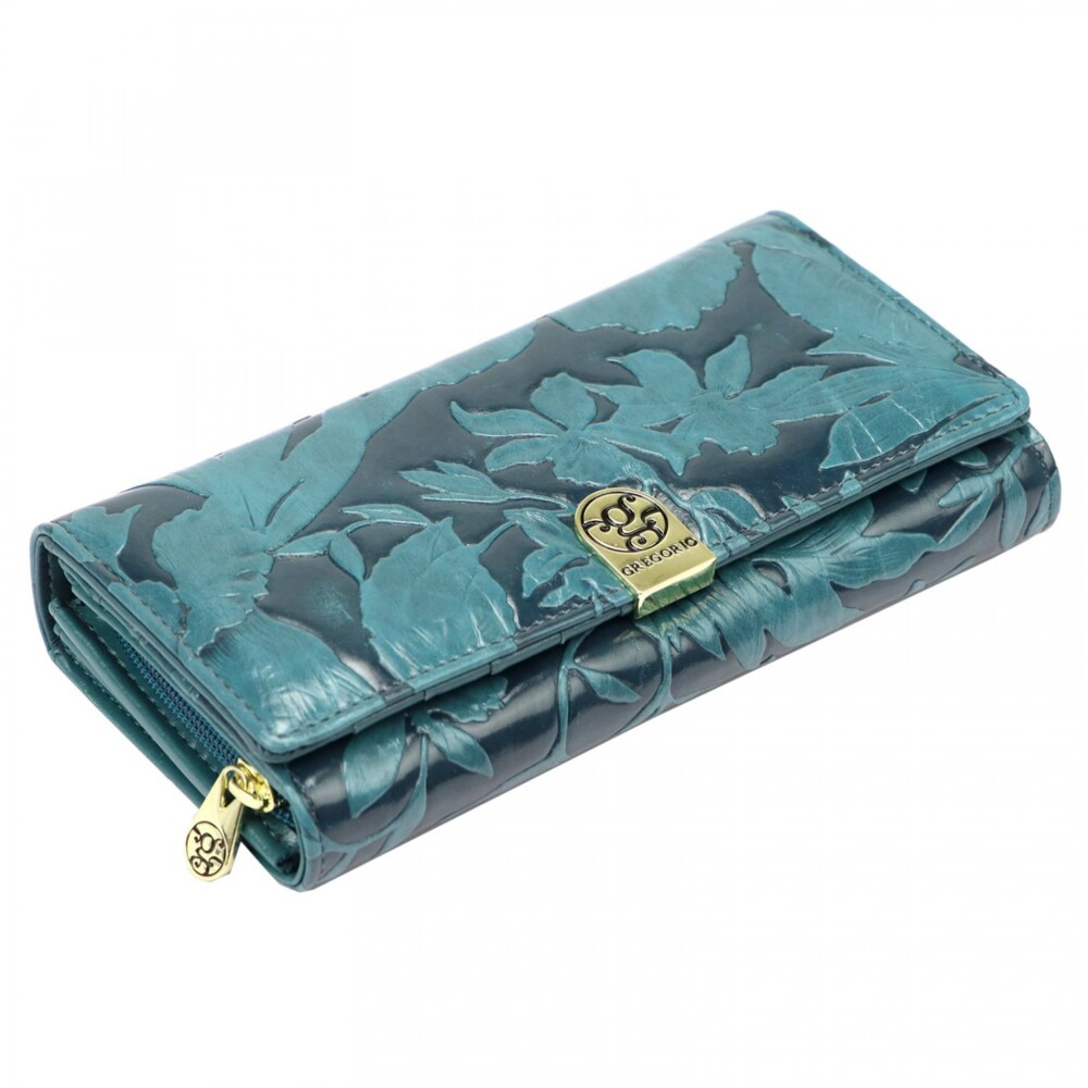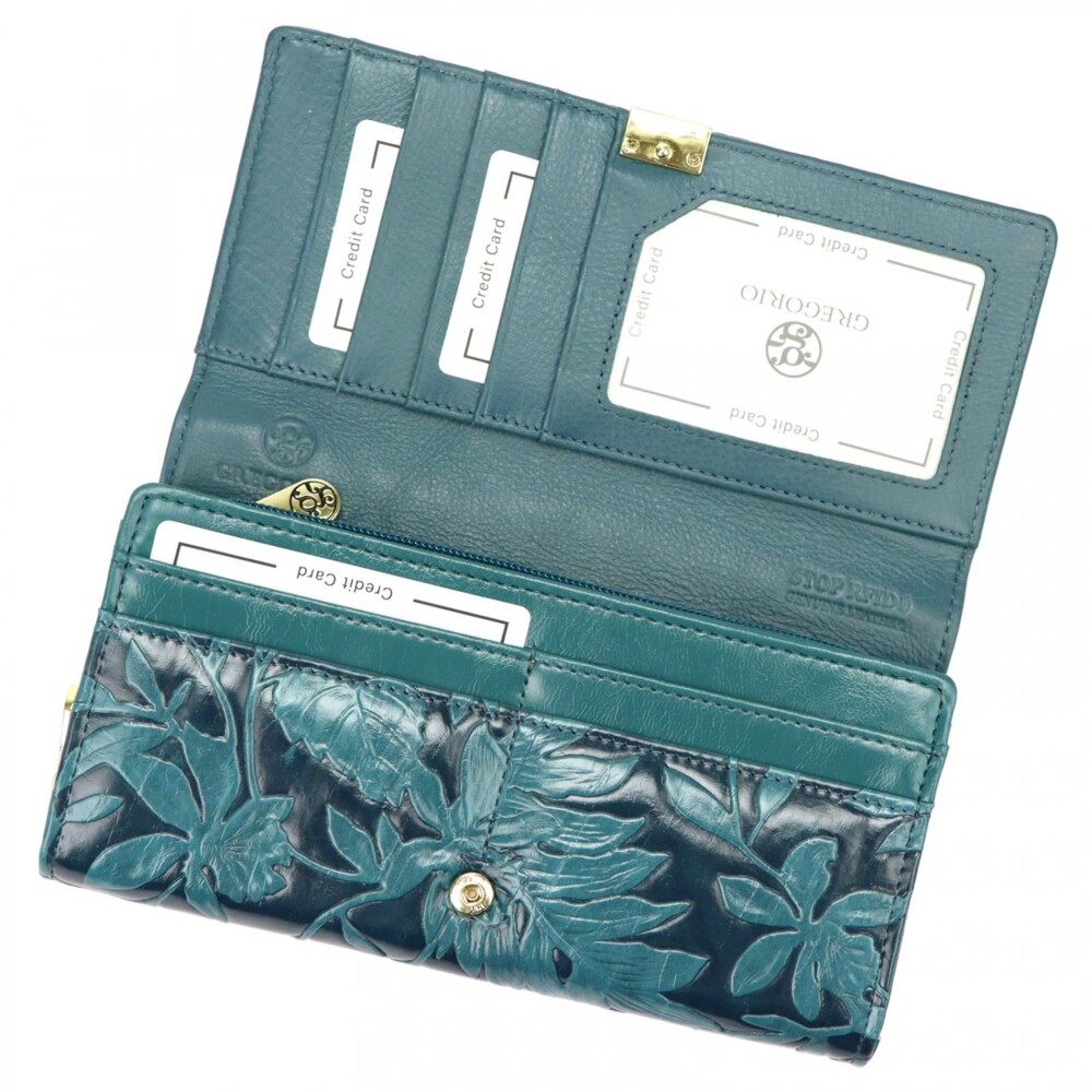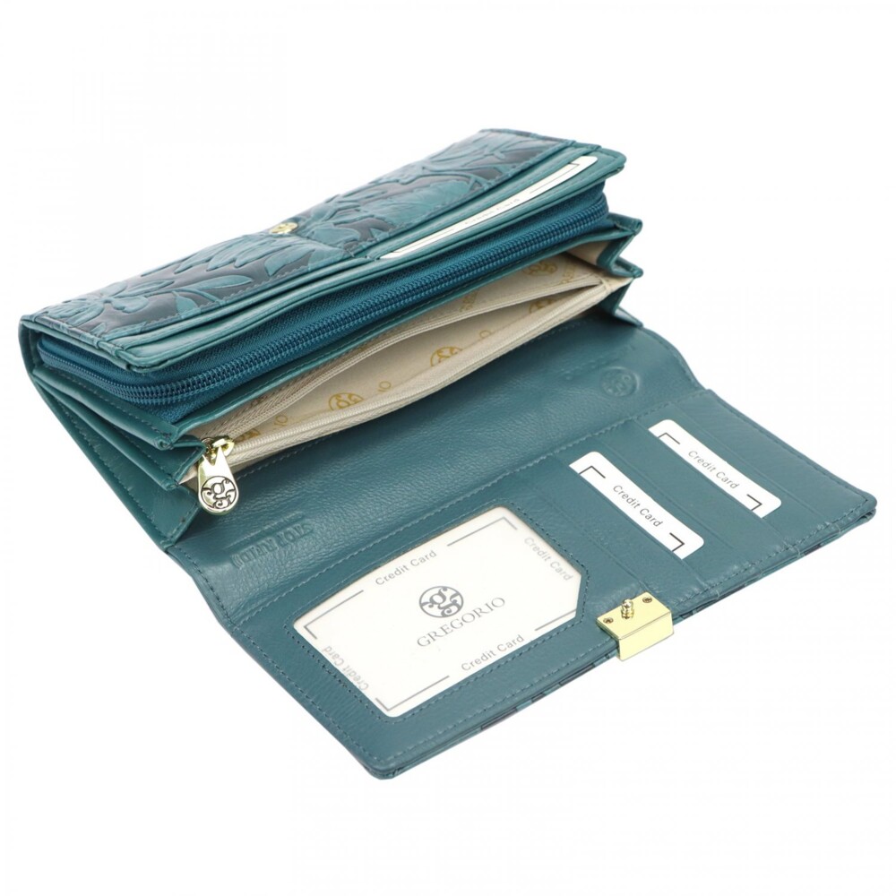 Vďaka jemnému kvetinovému dizajnu tejto štýlovej dámskej koženej peňaženky od značky Gregorio, budete elegantnosť sama. Vnútro modrej peňaženky ponúka mnoho vreciek na kreditné karty a doklady. Vnútri je aj veľké zipsové vrecko na mince a aj menšie vrecko na tajnosti, takisto na zips. Je veľmi pohodlná na nosenie a skvele sa hodí na každý deň. Peňaženka má RFID ochranu proti skenovaniu platobných kariet. Peňaženka sa dodáva v darčekovej krabičke. Tak objednajte ešte dnes a vyskúšajte! Vrátiť ho môžete do 30 dní.