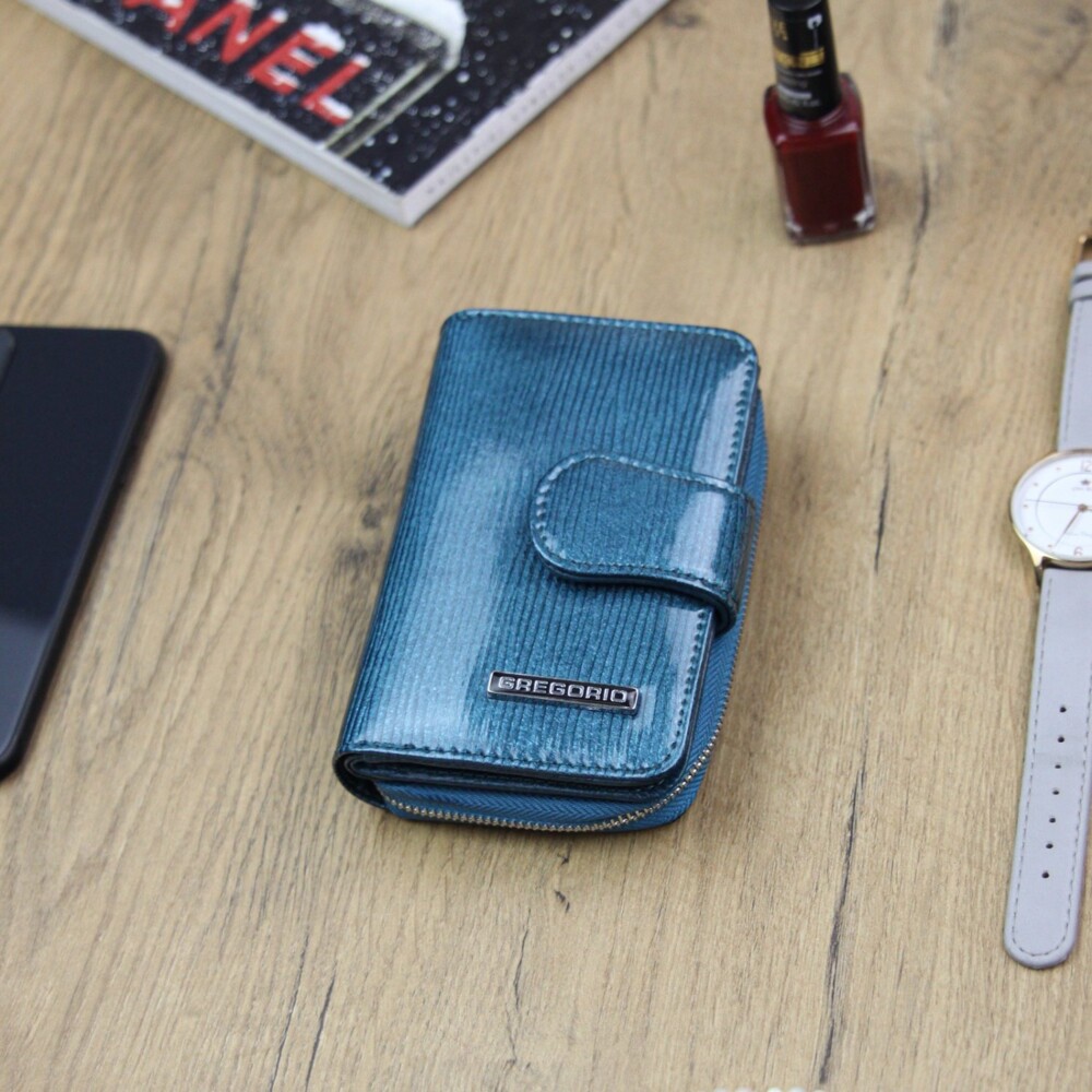 Lakovaná kožená peňaženka Gregorio, ktorá zaujme už na prvý pohľad svojim luxusným leskom. Prednú stranu zdobí praktická zápinka a kovové logo značky, ktoré podčiarkuje jej prémiový charakter. Po otvorení sa ukáže prakticky členený priestor – prehľadné priehradky na platobné karty, priestor na bankovky aj ďalšie drobnosti. zadná časť je riešená ako samostatné zipsové vrecko na mince. Peňaženka je vyrobená z kvalitnej lakovanej kože, ktorá nielen krásne vyzerá, ale aj odolá každodennému používaniu. Kovanie je strieborné, jemné a elegantné. Navyše sa dodáva v darčekovej krabičke. Tak objednajte ešte dnes a vyskúšajte, vrátiť ju môžete do 30 dní.