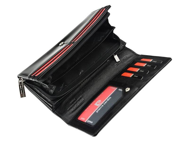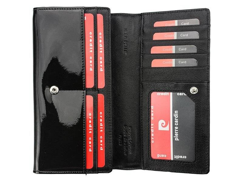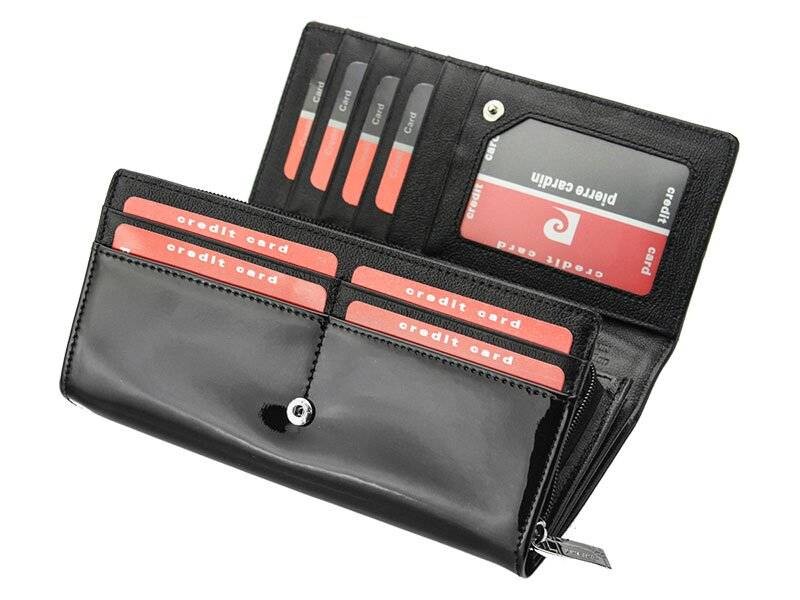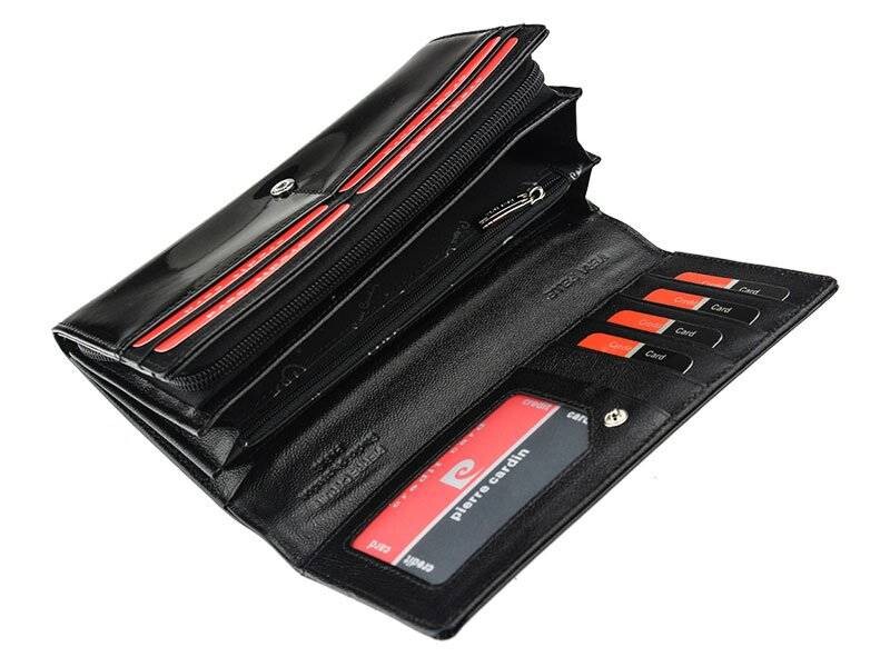 Elegantná dámska peňaženka z kvalitnej lakovanej kože zaujme svojim lesklým povrchom a nadčasovým dizajnom. Prednú klopu zdobí decentné strieborné logo značky Pierre Cardin, ktoré podčiarkuje luxusný vzhľad. Po otvorení ponúka prehľadne usporiadaný priestor pre platobné karty aj papierové peniaze. Na mince poslúži veľké zipsové vrecko. V zadnej vnútornej časti sa nachádza praktické zipsové vrecko na drobnosti. Peňaženka je dodávaná v elegantnej darčekovej krabičke, ideálna aj ako štýlový darček. Objednajte ešte dnes a vyskúšajte, vrátiť ju môžete až za 30 dní!