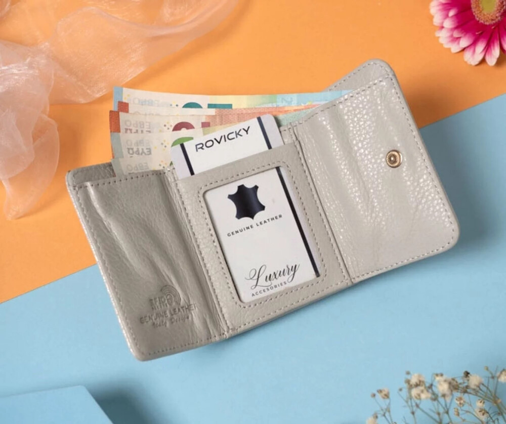 Malá kožená peňaženka, ktorá zaujme. Objavte dokonalú rovnováhu elegancie a funkčnosti s touto mini kráskou. Na prednej klope jemne zaznieva logo značky, zatiaľ čo vo vnútri sa skrýva priestor pre karty a papierové peniaze, s RFID ochranou pre pokoj v každej situácii. Zadná časť s kovovým rámčekom bezpečne uschová vaše mince. Celý klenot je pripravený na darovanie v elegantnej krabičke. Malá peňaženka, veľký dojem. Objednajte ešte dnes a vyskúšajte, vrátiť ju môžete až za 30 dní!
