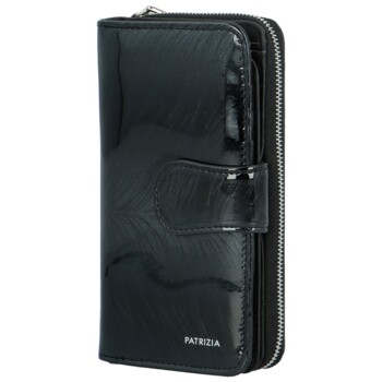 Luxusná dámska peňaženka z tmavosivej kože, v krásnom lakovanom prevedení, stredných rozmerov, na každý deň. Jej dizajn je veľmi luxusný. Po roztvorení cvoku ponúka dostatok miesta na uloženie vašich dokladov, platobných kariet a bankoviek. V ďalšej časti je vrecko na zips pre mince, vo vnútri je aj ďalšie zipsové stredové vrecko. Predný diel zdobí štýlové logo značky Patrizia v striebornej farbe. Krásne jemné prešitie je po obvode celej peňaženky. Strieborné kovanie jemne ladí s luxusným vzhľadom. Peňaženka sa dodáva v darčekovej krabičke. Tak objednajte ešte dnes a vyskúšajte! Vrátiť ju môžete do 30 dní.