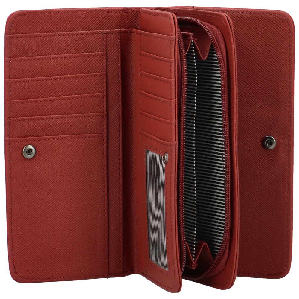 Značka MaxFly prichádza potešiť takmer každú ženu. Praktická veľká peňaženka červenej farby, ktorá pojme množstvo platobných kariet. Je rozdelená na tri časti. Prvá sa zatvára na cvok, vo vnútri nájdete priestor pre platobné karty, doklady aj bankovky. Stredová časť má zips a ponúka priestor pre mince. Posledná priehradka je v zadnej časti a je tiež na cvok. Sem uložíte aj karty a doklady. Perfektný kúsok z kvalitnej syntetickej kože so strieborným kovaním a logom značky na prednej strane. Objednajte ešte dnes a vyskúšajte! Vrátiť ju môžete až do 30 dní!