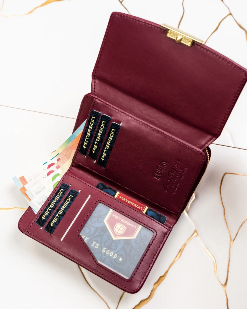 Syntetická peňaženka Peterson zaujme čistým dizajnom a praktickým usporiadaním. Na prednej strane sa nachádza klopa doplnená elegantným logom značky, ktoré dodáva peňaženke moderný a výrazný vzhľad. Po otvorení chlopne nájdete priestor pre vaše karty a papierové bankovky, všetko prehľadne a jednoducho usporiadané. Zadná časť peňaženky má samostatné zipsové vrecko na mince, ktoré je ideálne pre bezpečné uloženie drobných. Zlaté kovanie podčiarkuje celkový elegantný štýl a integrovaná RFID ochrana zaistí bezpečie vašich platobných údajov. Peňaženka je navyše dodávaná v darčekovej krabičke. Ojednajte ešte dnes a vyskúšajte, vrátiť ju môžete do 30tich dní.