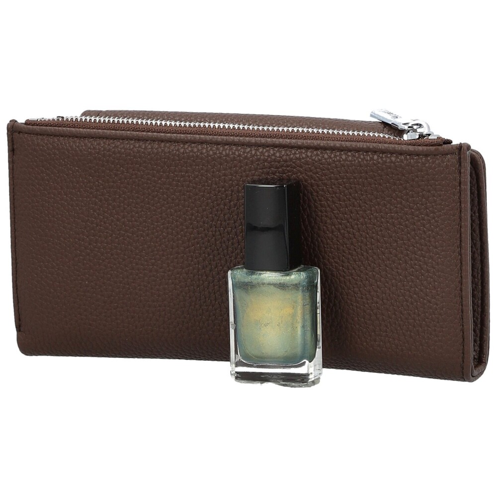 Priestranná dámska peňaženka z kvalitnej koženky, ktorá zaujme svojim elegantným štýlom a funkčným dizajnom. Prednú časť zdobí jemné logo značky a poklop na cvok, ktorý pôsobí vkusne a zároveň chráni vnútorný obsah. Vnútri sa nachádza množstvo priehradok na karty, bankovky aj doklady, takže budete mať všetko dokonale zorganizované. Zadnú časť dopĺňa praktické zipsové vrecko na mince. Strieborné kovanie dodáva celku moderný a svieži vzhľad. Peňaženka, ktorá v sebe spája eleganciu, priestor aj premyslený detail – ideálny doplnok pre ženy, ktoré chcú mať všetko na dosah. Objednajte ešte dnes a vyskúšajte, vrátiť ju môžete až za 30 dní!