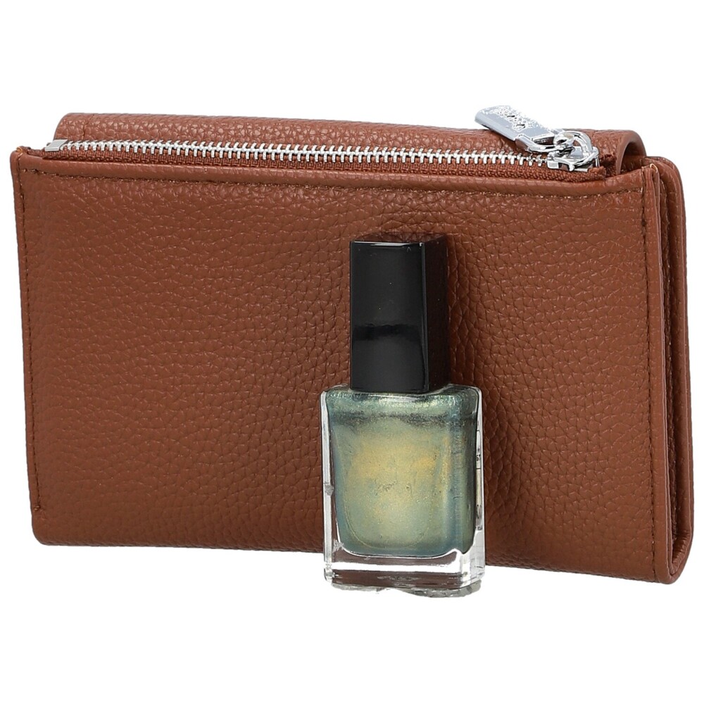 Stredná dámska peňaženka z kvalitnej koženky je ideálnym spoločníkom na každý deň. Na prvý pohľad zaujme elegantným dizajnom s logom značky a chlopňou na cvok, ktorá pôsobí vkusne a zároveň zaisťuje ľahký prístup k obsahu. Vnútri sa ukrýva dostatok priehradiek na karty, bankovky aj doklady, všetko prehľadne as citom pre detail. Zadnú časť dopĺňa praktické zipsové vrecko na mince. Strieborné kovanie dodáva celku moderný, svieži nádych. Štýlová, funkčná a nadčasová - peňaženka, ktorá sa stane ozdobou každej kabelky. Objednajte ešte dnes a vyskúšajte, vrátiť ju môžete až za 30 dní!