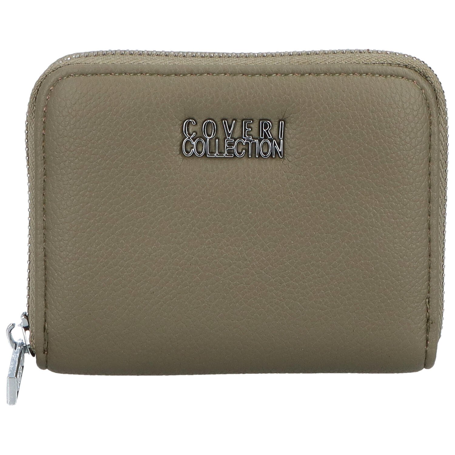 Dámska malá peňaženka od značky Coveri. Jednoduchá khaki peňaženka najmä na mince a zložené bankovky. Zatvára sa zipsom. Vnútri je pár priehradiek. Na mince je vrecko so zipsom. Po bokoch sú priehradky na bankovky a na kreditnú kartu s dokladom.