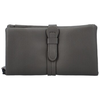 Štýlová dámska peňaženka, ktorá má príjemný mäkký materiál. Peňaženku otvoríte pomocou koženkového prúžku na cvok. Vnútri nájdete dostatok miesta pre svoje platobné karty, doklady aj papierové peniaze. Uprostred je zipsové vrecko na mince. Môžete ju nosiť v kabelke, ale k dispozícii máte aj pútko a tak vám môže zdobiť zápästie pri pohodových nákupoch. Kovanie je v tmavo striebornej farbe. Tak objednajte ešte dnes a vyskúšajte, vrátiť ju môžete do 30 dní.