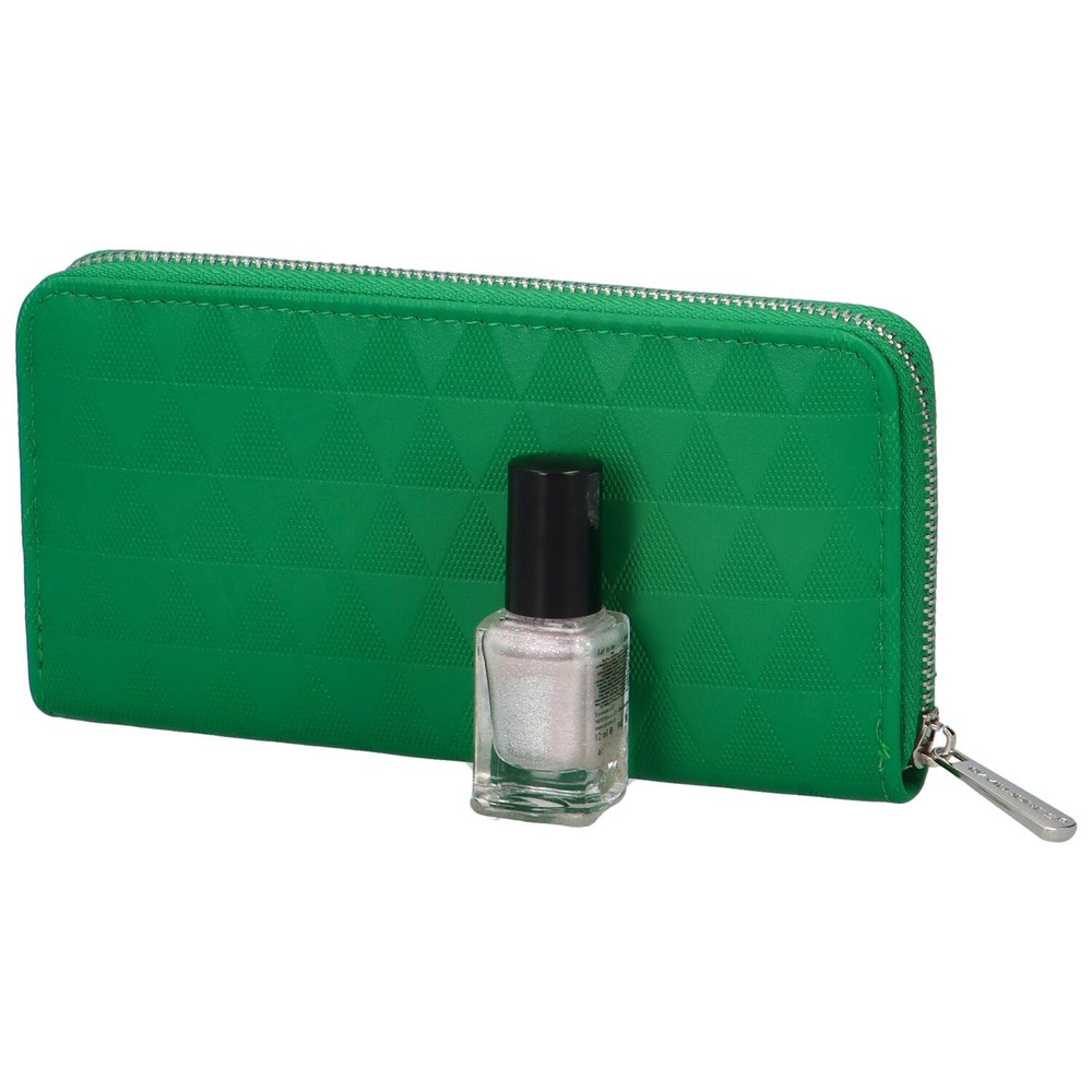 Táto jednoduchá sýto zelená peňaženka je skvelou voľbou pri výbere ďalšej peňaženky do kabelky. Dizajnéri značky David Jones si dali záležať a výsledkom je táto vkusná syntetická krásku stredných rozmerov. Celá sa zapína zipsom, je úzka a príjemne padne do ruky. Vnútri je pár priehradiek na kreditné karty a doklady, niekoľko vreciek na bankovky a nechýba vrecko so zipsom na drobné mince. Samozrejme dizajn nie je pozadu, zaujme vás originálny vzhľad s logom značky na prednej strane.