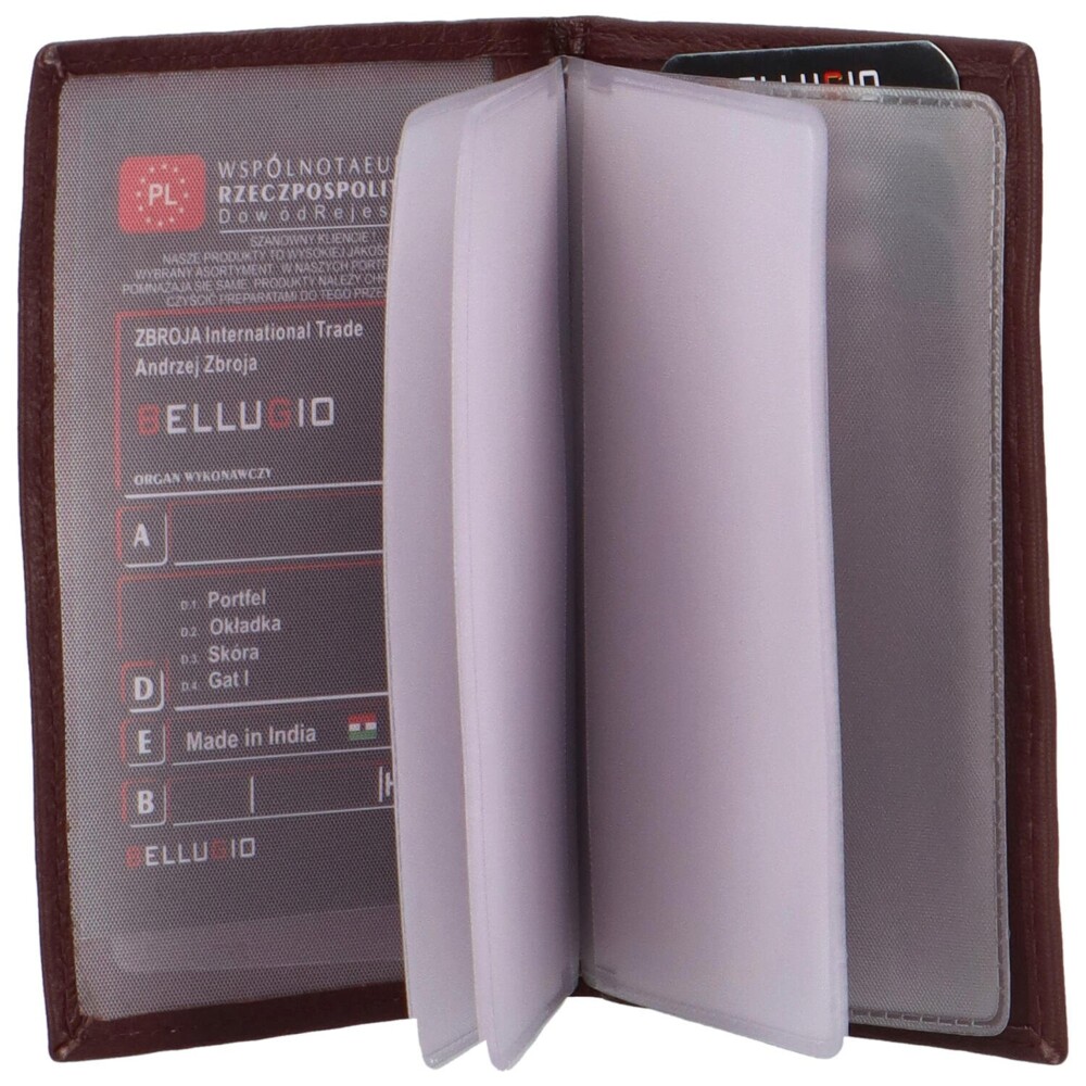 Kožené puzdro na doklady od značky Bellugio, v ktorom budete mať vaše dôležité veci pekne uschované a vždy po ruke. Vnútri nájdete plastové aj kožené priehradky na doklady a karty. Prednú stranu zdobí logo značky a jemné prešitie. Objednajte ešte dnes a vyskúšajte, vrátiť ho môžete až za 30 dní!