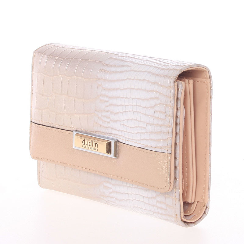 Luxusná a módna lesklá ružová dámska peňaženka Dudlin je novinkou jarnej sezóny a hitom roku 2018. Má elegantný moderný dizajn a spĺňa všetky aspekty praktického potrebného doplnku. Na prednej klope, ktorá sa zatvára cvočkom, má zlaté logo. Vnútri peňaženky sú voľné priehradky, aj priehradky pod zipsom. Cez ďalší klasický cvok sa otvárajú ďalšie možné priehradky pre karty a doklady. Na bočnej strane je miesto pre papierové bankovky. Vylaďte seba i svoju kabelku s touto kráskou a buďte hviezdou!