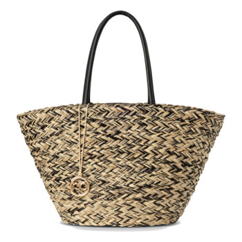 Stredná čierno/béžová pletená kabelka cez rameno, ktorá vás spoľahlivo doplní za horúcich letných dní. Nobo. Pletený slamový vzor dopĺňajú koženkové prvky a vytvárajú tak príjemný kontrast. Kabelka má hlavné vrecko na zips a vo vnútri je dostatok priestoru pre vaše veci na každý letný deň, nechýbajú vnútorné bočné vrecká. Uchá sú pevné a budú vám perfektne sedieť na ramene. Zlatý prívesok v podobe loga značky sa dá odopnúť. Objednajte ešte dnes a vyskúšajte! Vrátiť ju môžete až do 30 dní!