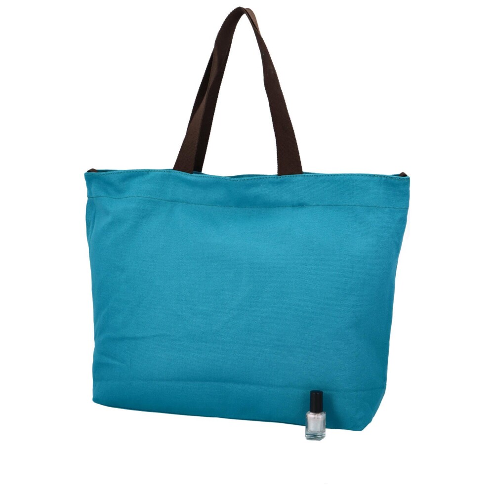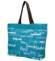Dámska látková taška na pláž - plážová kabelka cez rameno, s dlhým uchom a moderným designom s nápismi na modrom podklade. Otvára sa pomocou zipsu a vo vnútri nájdete vrecko na zips na drobnosti, telefón či doklady. Taška ponúka priestor a trendy vzhľad. Práve vďaka tomu ju možno využiť aj v lete ako nákupnú tašku alebo kabelku do mesta!
