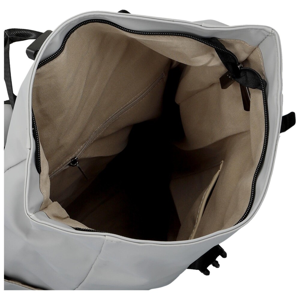 Trendy mestský batoh v modernom unisex prevedení, ktorý spája štýlový dizajn, praktickosť a pohodlie na každý deň. Pogumovaný syntetický materiál dodáva batohu súčasný vzhľad, jednoduchú údržbu a odolnosť voči bežnej mestskej premávke. Hlavný úložný priestor so zapínaním na zips, vrchná časť sa dá elegantne ohnúť a navyše zaistiť prackou, čo batohu dodáva originálny štýl. Vnútri nájdete praktické vrecká v podšívke aj samostatný oddelený priestor pre notebook. Prednú stranu zdobia dve výrazné zvislé zipsové vrecká pre rýchly prístup, po stranách nechýbajú dve otvorené vrecká. Na zadnej strane je navyše diskrétne zipsové vrecko. Maximálny komfort pri nosení zaistí vypolstrovaný chrbát, nastaviteľné ramenné popruhy a pevné horné ucho pre pohodlné prenášanie v ruke. Perfektná voľba do mesta, do práce, školy aj na voľný čas. Objednajte ešte dnes a vyskúšajte, vrátiť ho môžete až do 30 dní!