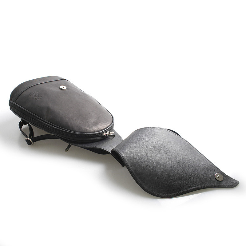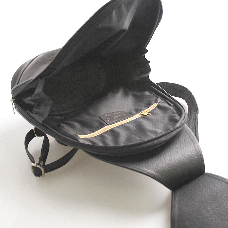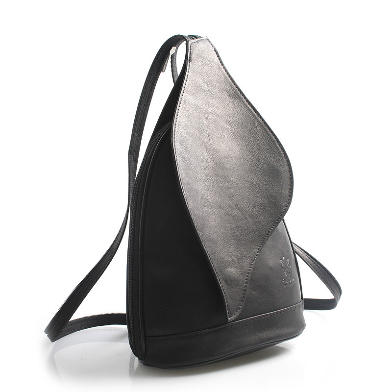 Čierny luxusný kožený mestský ruksak Italy. Elegantný dámsky ruksak s výraznou chlopňou v tvare listu vás určite očarí. Doba batohov je späť, preto by nemal chýbať v žiadnom dámskom šatníku. Vnútri je jedno vrecko so zipsom a zozadu ďalšie na zips. Batoh je možné nosiť buď klasicky alebo spojením popruhov crossbody. Novinka a bestseller 2016.