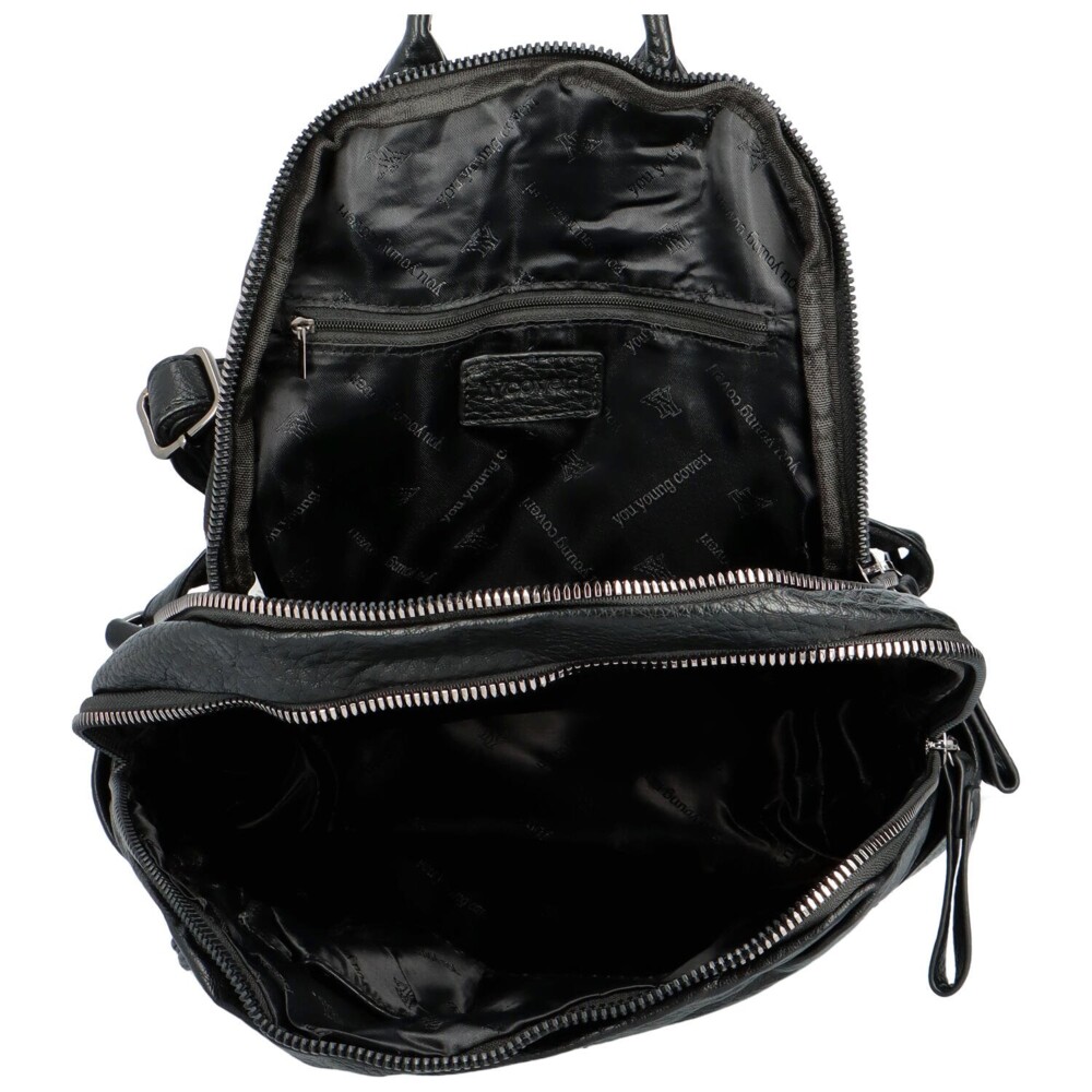 Koženkový batoh, ušitý z mäkkého materiálu, pre ľahký pocit na chrbte po celý deň. Batoh ponúka dve veľké vrecká na zips, na uloženie vašich dôležitých vecí. Vnútri nechýbajú postranné priehradky aj menšie vrecko na zips. Predný aj zadný diel, je tiež vybavený väčším vreckom na zips, kam uložíte veci, ktoré chcete mať stále po ruke. Po boku sú voľné priehradky, napríklad na menšiu fľašu, či vreckovky. Ucho je pevné do ruky, popruhy pohodlné a dlhé na nosenie na ramenách a dajú sa regulovať. Predný diel zdobí kovové logo značky. Objednajte ešte dnes a vyskúšajte, vrátiť môžete až za 30 dní!