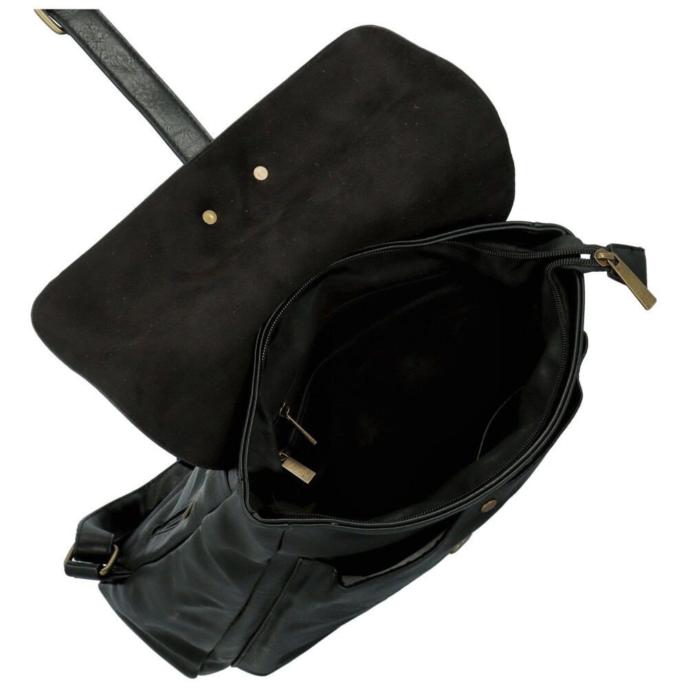 Nadčasový a praktický kúsok na vaše cestovanie. Klopa batohu sa otvára na cvok, mosadzná pracka je len ozdobná. Pod ňou je hlavné vrecko na zips, pre maximálne bezpečné uloženie vašich osobných vecí a všetkého, čo nosíte so sebou. Nechýbajú vnútorné postranné priehradky na drobnosti či mobil. Je tam aj všité vrecko so zipsom, ktoré priestor čiastočne rozdeľuje. Predný diel, má tiež menšie vrecko pod chlopňou. Ucho je pevné, krátke do ruky alebo na zavesenie. Popruhy sú dostatočne dlhé, s možnosťou regulácie na pohodlné nosenie po celý deň. Zadný diel má zvislé zipsové vrecko. Celkový trendy vzhľad, umocňuje mosadzné kovanie. Objednajte ešte dnes a vyskúšajte, vrátiť ho môžete až do 30 dní!