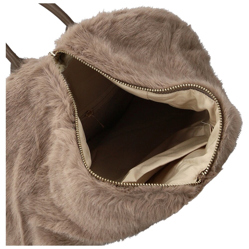 Tento chlpatý dámsky batôžtek je stelesnením roztomilosti aj štýlu. Jeho mäkučký plyšový povrch doslova nabáda k pohladeniu, zatiaľ čo koženkové doplnky ako pevné ucho, nastaviteľné popruhy a jemné detaily, dodávajú celému dizajnu elegantný a moderný kontrast. Zaujme svojim netradične riešeným zipsom, ktorý začína pri hornom uchu a smeruje šikmo k prednej časti batôžku. Zips je možné zaháknuť karabínkou, čo nielen zvyšuje bezpečnosť, ale tiež vytvára zaujímavý a originálny vzhľad. Vnútri hlavného priestoru sa nachádzajú kapsičky v podšívke, ideálne pre prehľadné usporiadanie drobností. Na zadnej strane potom nechýba praktické zipsové vrecko. Zlaté kovanie dodáva batôžku nádych luxusu a spolu s plyšovým povrchom tvorí jedinečnú kombináciu jemnosti a elegancie. Objednajte ešte dnes a vyskúšajte, vrátiť ho môžete až za 30 dní!