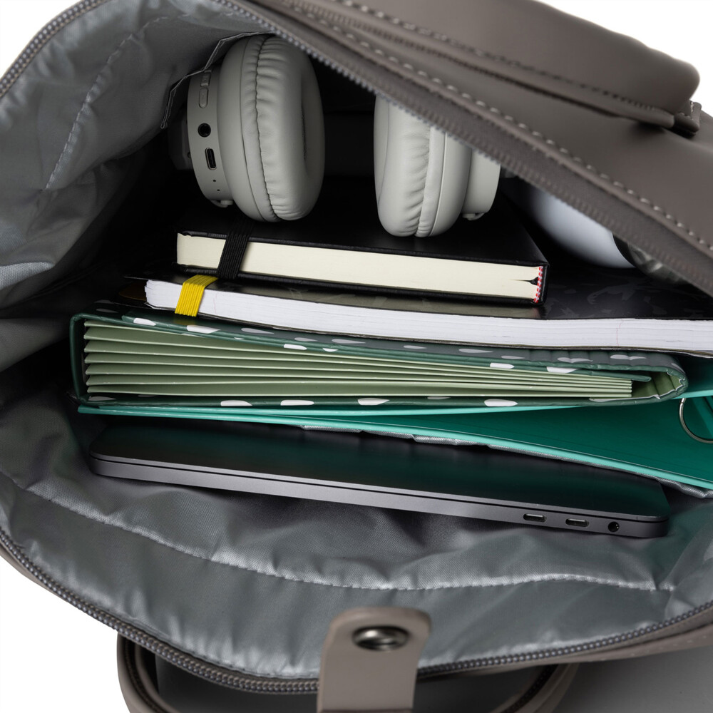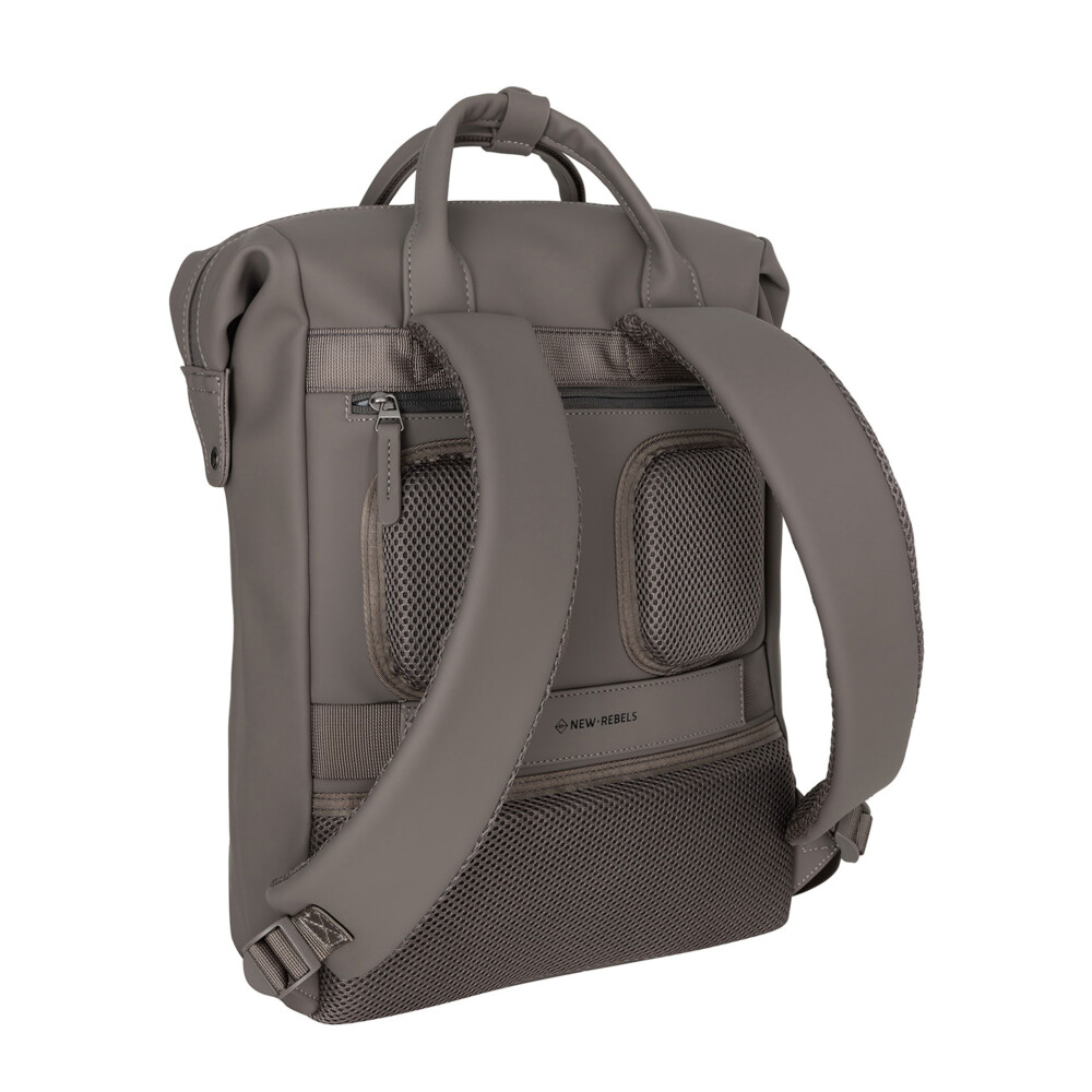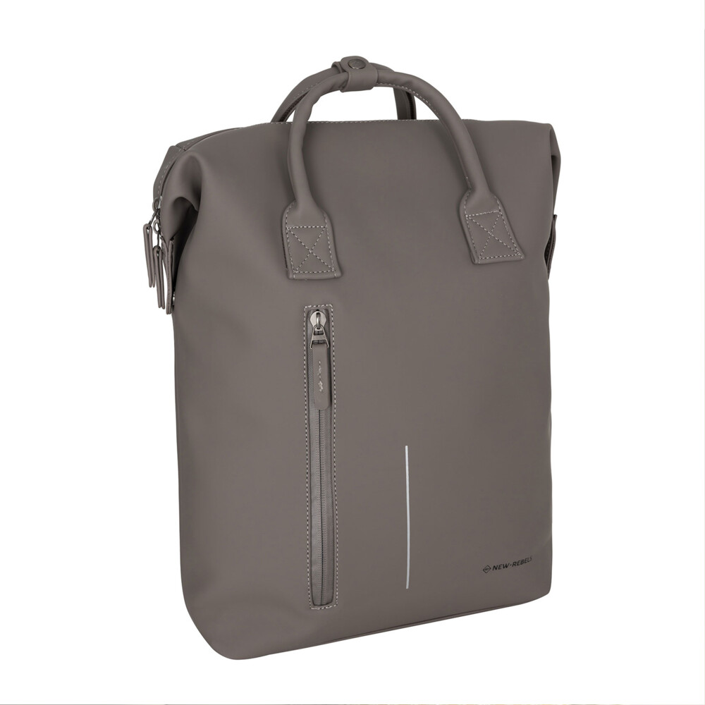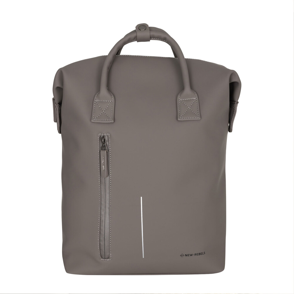 Objednajte ešte dnes a vyskúšajte, vrátiť ho môžete až do 30 dní! Veľmi atraktívny moderný plecniak značky New Rebels je praktickým módnym dámskym doplnkom. Taupe hladký väčší batoh z umelej kože má polstrovné popruhy aj chrbát aj s chrbtovým bodovým systémom. Zároveň je na zadnej strane batohu pás, vďaka ktorému je možné ho upevniť na madlo kufra. Využiť ho môžete teda aj ako cestovnú batožinu a nie len v meste, v škole alebo v práci. Na prednej strane nájdete zvislé vrecko so zipsom. Hlavný priestor sa otvára pomocou zipsu a vo vnútri je ľahko polstrovaná priehradka na tablet či menší notebook. Samozrejmosťou sú malé vrecká na telefón či kozmetiku. Zároveň musíme spomenúť jeho vodeodolnosť a to aj so zipsami, ktoré sú pogumované.
