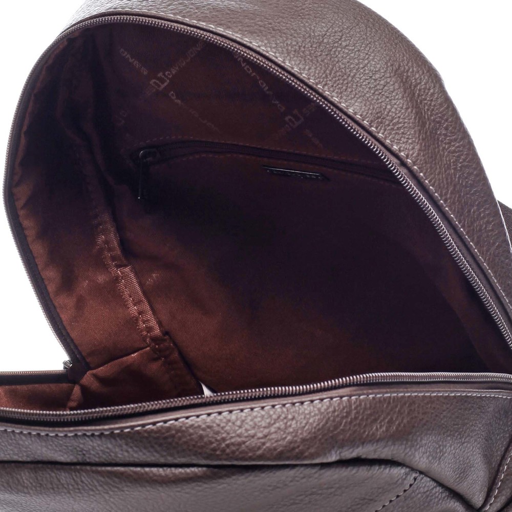 Novinka od značky David Jones je tu! Stredne veľký, matný, mestský, originálny batoh pre ženy. Je skvelou voľbou do mesta aj na prechádzky. Je mäkký, má pevnejšie ucho a látkové popruhy. Hlavné, oválna vrecko so rozopína duálnym zipsom a na prednej strane nájdete ďalšie kapsičku na zips. Menším bonusom sú voľné malé vrecká na bokoch tmavo hnedého batohu. Hlavný úložný priestor Vám ponúkne strednej voľnú kapsu a kapsičku so zipsom na cennosti a drobnosti či telefón. Objednajte ešte dnes a vyskúšajte, vrátiť ju môžete až za 30 dní!