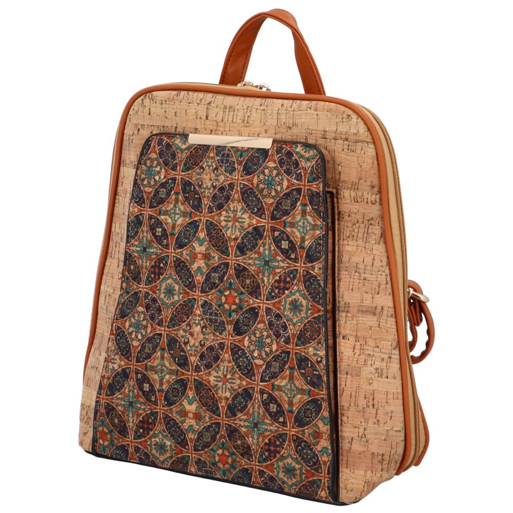 Tento dámsky batôžtek do mesta, od značky Firenze, vás zaujme svojim sviežim dizajnom a prekvapí svojou praktickou stránkou. Jednoducho si ho zamilujete. Korok je skvelý prírodný materiál na letné dni. Vďaka koženkovým prvkom je tento model praktický, potlač dodáva originálny vzhľad každému modelu a kovanie v zlatej farbe dokresľuje celkový dojem z batôžka. Objednajte ešte dnes a vyskúšajte, vrátiť ju môžete až za 30 dní! Na prednej strane nájdete menšie vrecko na cvok s ozdobným kovaním na hornom okraji. Hlavný úložný priestor uzavrite decentným zipsom. Zips je predĺžený až k spodnému okraju, vďaka tomu batôžtek viac roztvorte. Otvorené vrecko po stranách zachytáva našitý materiál. Vnútri nájdete otvorené priehradky a uzatvárateľné vrecko všité do podšívky. Koženkové popruhy sú našité napevno a ladia s celkovým dizajnom batôžku. Môžete regulovať ich dĺžku.