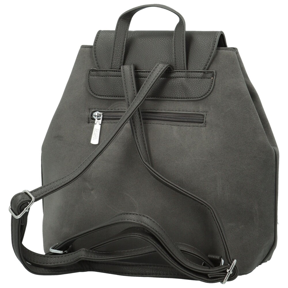 Elegantný dámsky batoh z koženky, ktorý zaujme svojim premysleným designom a kombináciou materiálov. Telo z hebkej semišovej koženky pôsobí mäkko a žensky, zatiaľ čo klopa a popruhy z hladkej koženky dodávajú celku moderný kontrast. Klopa s logom značky skrýva hlavné vrecko na zips, vo vnútri nájdete vrecká v podšívke pre prehľadné usporiadanie vecí. Bočné cvoky umožňujú upraviť tvar batohu podľa potreby, elegantne zúžiť či ponechať priestrannejšie. Nechýba zadné zipsové vrecko, pevné ucho na nosenie v ruke a nastaviteľné popruhy pre maximálne pohodlie. Strieborné kovanie podčiarkuje štýlový charakter batohu, ktorý sa skvele hodí do mesta aj na voľné dni. Objednajte ešte dnes a vyskúšajte, vrátiť ho môžete až do 30 dní!