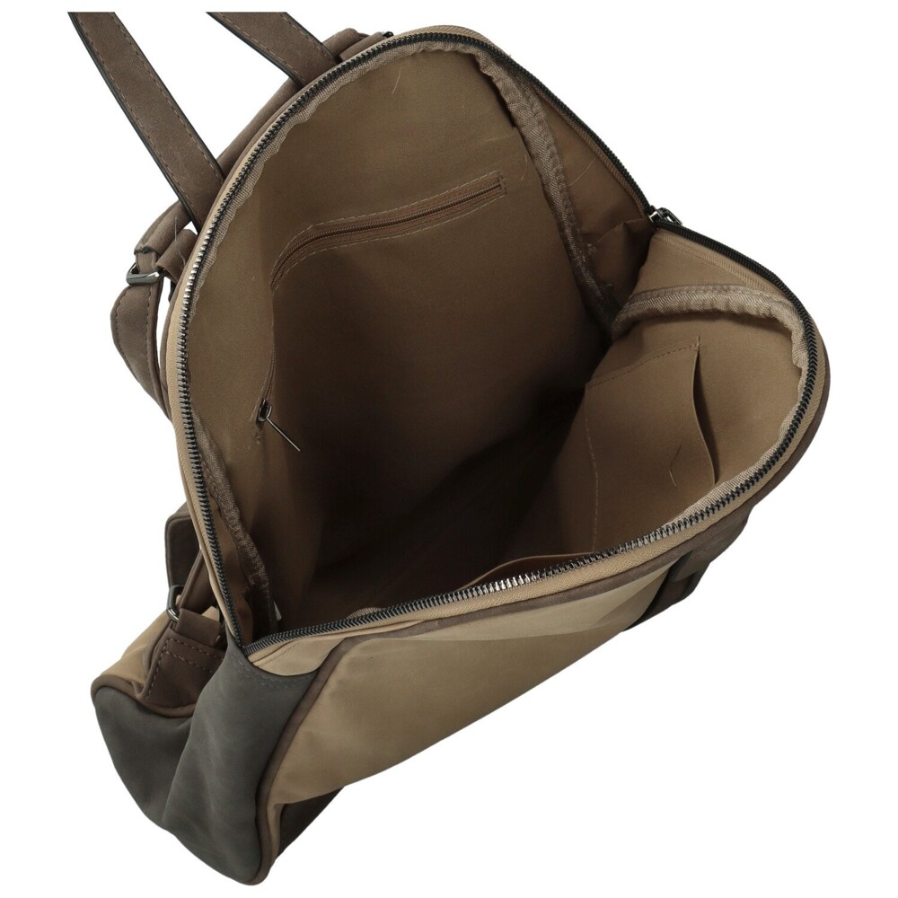 Originálne koženkový kabelko-batoh, ktorý zaujme svojim nápaditým farebným kontrastom a šikovným riešením. Prednú časť zdobí kombinácia dvoch tónov, medzi ktorými je nenápadne ukryté zipsové vrecko. Hlavný priestor sa zatvára na zips a skrýva praktické vrecká v podšívke, zatiaľ čo na zadnej strane nájdete ďalšie vrecko na drobnosti, ktoré chcete mať po ruke. Vďaka nastaviteľným popruhom je možné batoh jedným ťahom premeniť na elegantnú tašku na rameno. Štýlový doplnok pre každý deň, ktorý spája hravosť, funkčnosť a šmrnc. Objednajte ešte dnes a vyskúšajte, vrátiť ho môžete až do 30 dní!