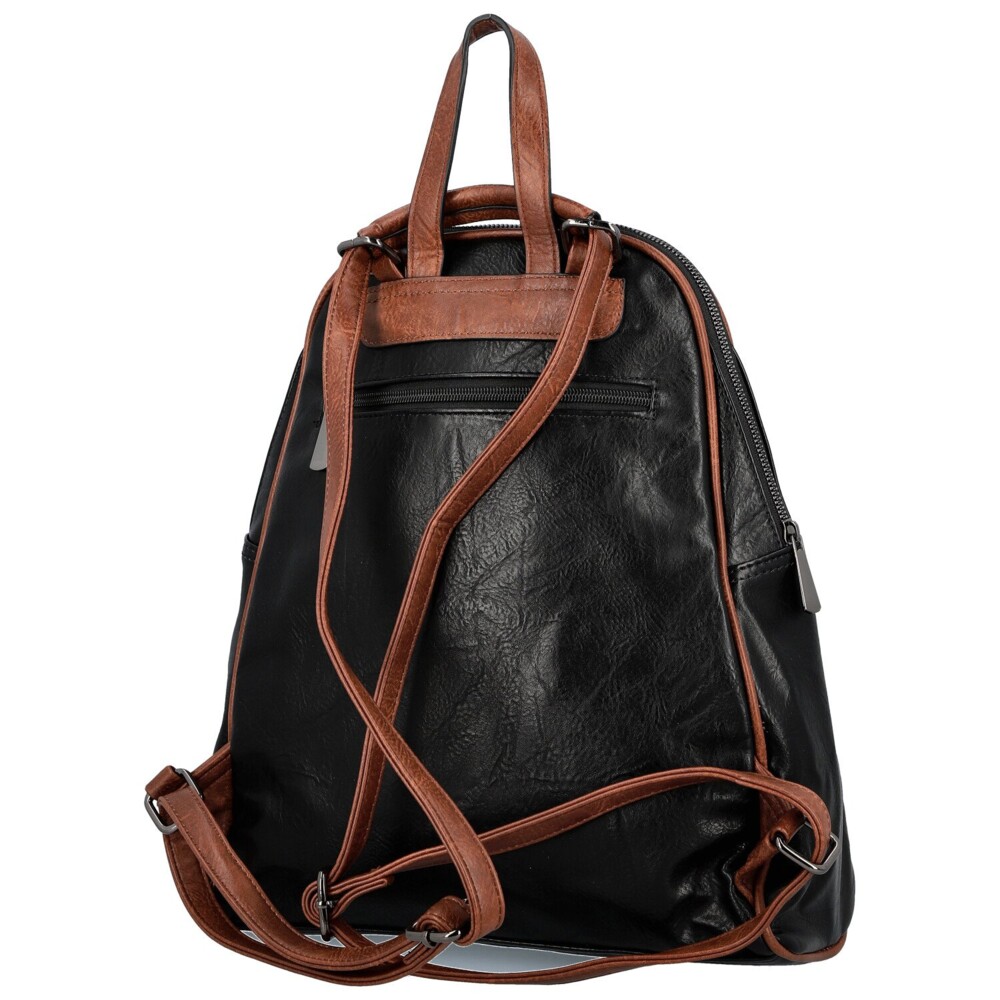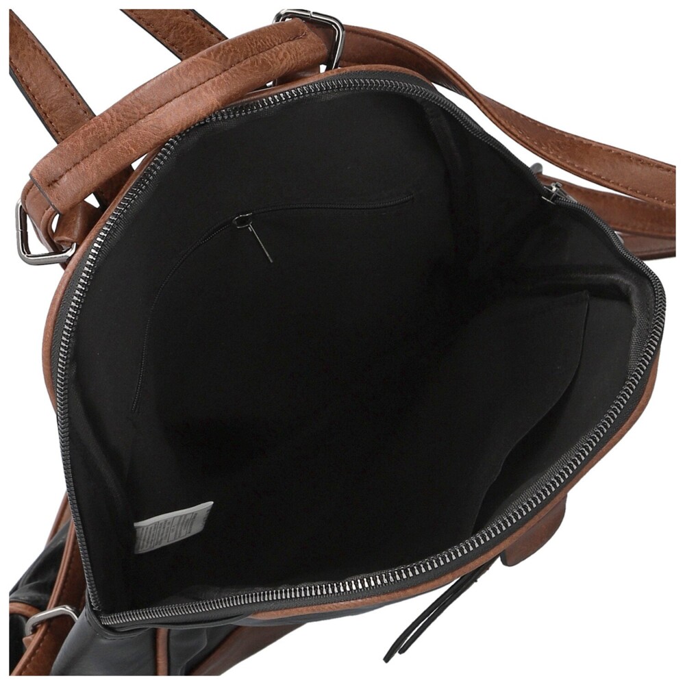 Koženkový kabelko-batoh, ktorý spája praktickosť batohu a elegantný vzhľad kabelky, zaujme už na prvý pohľad svojou originálne riešenou prednou stranou. Dominantný hladký povrch v jesennom odtieni dopĺňajú hnedé detaily, od horného lemu, cez pevné ucho, nastaviteľné popruhy až po detail v spodnej časti. Do prednej strany je šikovne ukryté zvislé zipsové vrecko, ideálne na drobnosti. Hlavné vrecko je zabezpečené zipsom a vo vnútri nájdete praktické vrecká v podšívke pre lepšiu organizáciu. Na zadnej strane nechýba ďalšie zipsové vrecko, skryté a bezpečné. Batoh je vybavený nastaviteľnými popruhmi, ktoré sa pohodlne prispôsobia. Všetko dopĺňa strieborné kovanie. Objednajte ešte dnes a vyskúšajte, vrátiť ho môžete až do 30 dní!