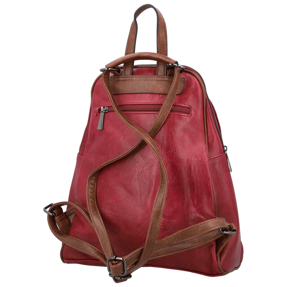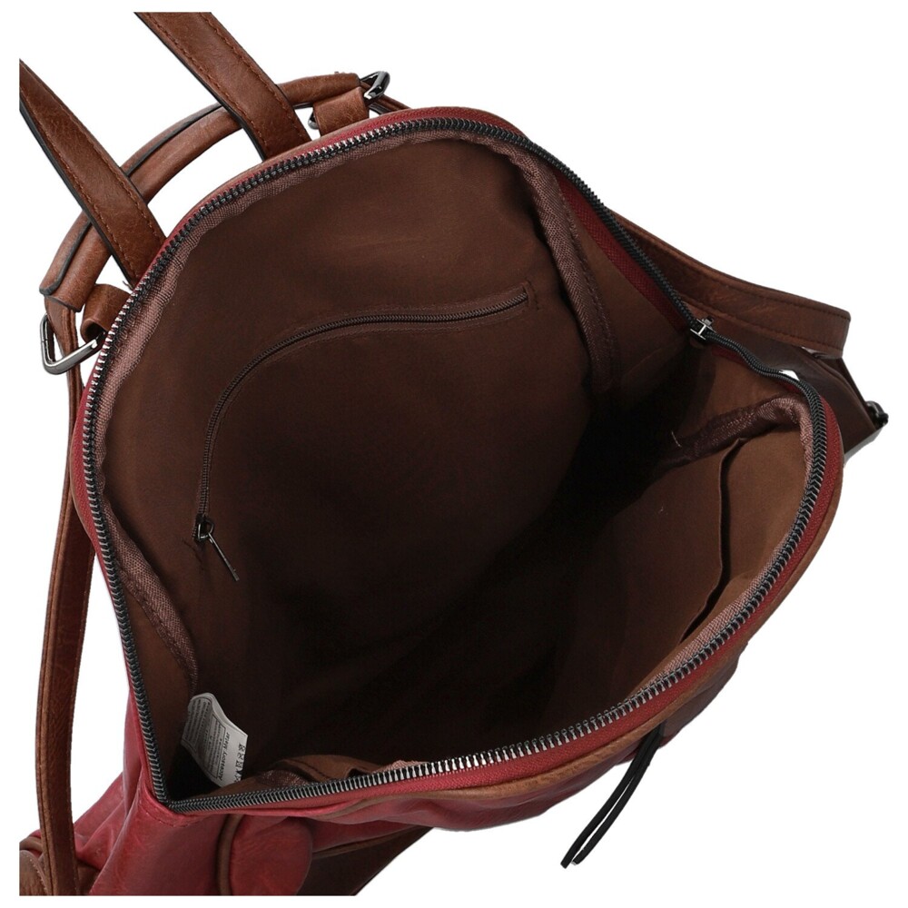 Koženkový kabelko-batoh, ktorý spája praktickosť batohu a elegantný vzhľad kabelky, zaujme už na prvý pohľad svojou originálne riešenou prednou stranou. Dominantný hladký povrch v jesennom odtieni dopĺňajú hnedé detaily, od horného lemu, cez pevné ucho, nastaviteľné popruhy až po detail v spodnej časti. Do prednej strany je šikovne ukryté zvislé zipsové vrecko, ideálne na drobnosti. Hlavné vrecko je zabezpečené zipsom a vo vnútri nájdete praktické vrecká v podšívke pre lepšiu organizáciu. Na zadnej strane nechýba ďalšie zipsové vrecko, skryté a bezpečné. Batoh je vybavený nastaviteľnými popruhmi, ktoré sa pohodlne prispôsobia. Všetko dopĺňa strieborné kovanie. Objednajte ešte dnes a vyskúšajte, vrátiť ho môžete až do 30 dní!
