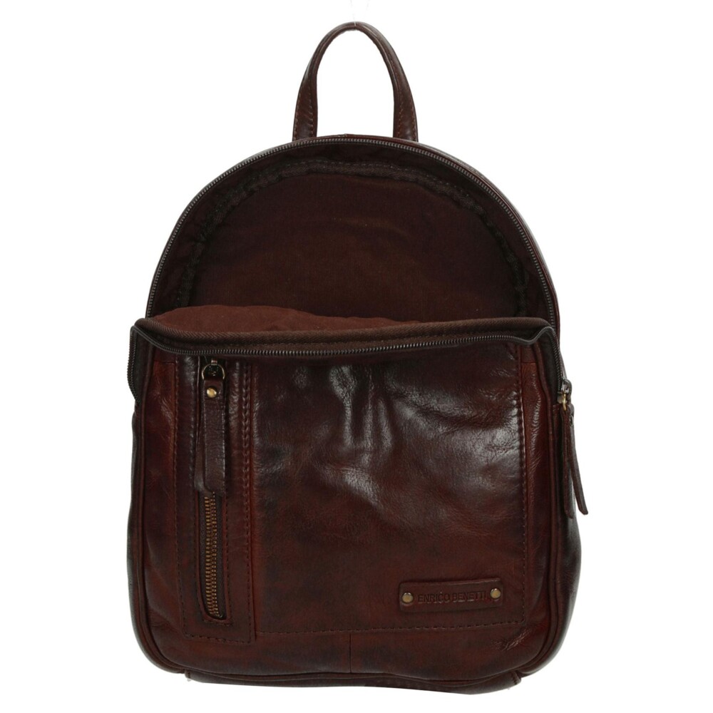 Luxusný menší batôžtek z prvotriednej hovädzej kože, od značky Enrico Benetti, má tmavo hnedú farbu. Objednajte ešte dnes a vyskúšajte, vrátiť ju môžete až za 30 dní! Tento dámsky batoh sa stane nepostrádateľným spoločníkom na vašich cestách, či už do mesta, do práce alebo na výlete. Ponúka dostatočný priestor na všetky osobné veci, hlavné vrecko otvoríte pomocou zipsu, ďalšie vrecko so zipsom je na prednej aj zadnej strane. Popruhy batohu sú tiež kožené a bonusom je to, že sú na zips. Pokiaľ nosíte rada batoh cez rameno, u tohto modelu to nebude problém, popruhy možno zopnúť zipsom. Objednajte ešte dnes a majte všetko potrebné vždy po ruke - štýlovo, s kvalitou a bez kompromisov.