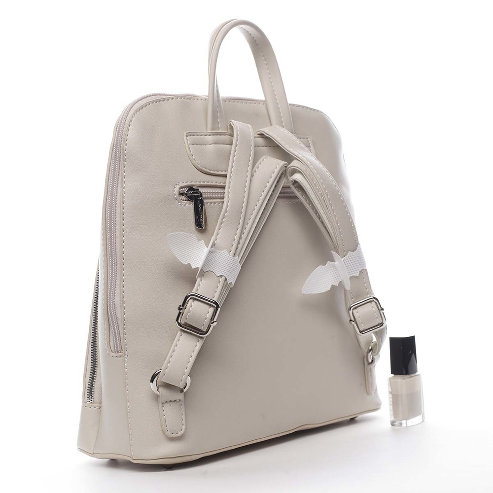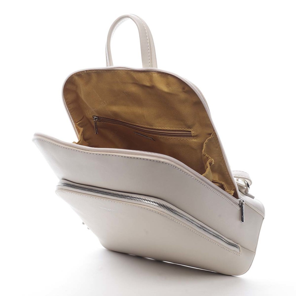 Nielen kabelky, ale aj mestské batôžky sú na vrchole rebríčka svetových trendov a módy. Preto by mala mať každá žena aspoň jeden po ruke. Ide totiž o praktický, módny doplnok k Vášmu outfitu. Vyskúšajte svetovo známu značku David Jones . Objednajte ešte dnes a vyskúšajte, vrátiť ju môžete až za 30 dní! Batoh Yordan má pevnejšie steny a pevné dno opatrené kovovými cvočkami, získava tak skvelú stabilitu a obmedzia možnosti zašpineniu aj odreniny batohu. Ponúkne Vám dve vrecká s duálnym zipsom, ktoré možno rozopnúť až takmer ku dnu batohu. V oboch prípadoch sú na bokoch membrány, ktoré zabránia vypadávaniu akýchkoľvek predmetov z vnútorných častí batohu. Veľké vrecko navyše ponúkne strednej voľnú vrecko na telefón a kozmetiku a kapsičku na zips. Aj na zadnej strane batohu nájdete kapsičku so zipsom. Popruhy sú podšité látkou. Hladký, jemný, svetlo béžový batoh Vám dodá štýl v meste aj na prechádzke parkom, užitočný Vám bude aj na večierku alebo pri schôdzke. :)