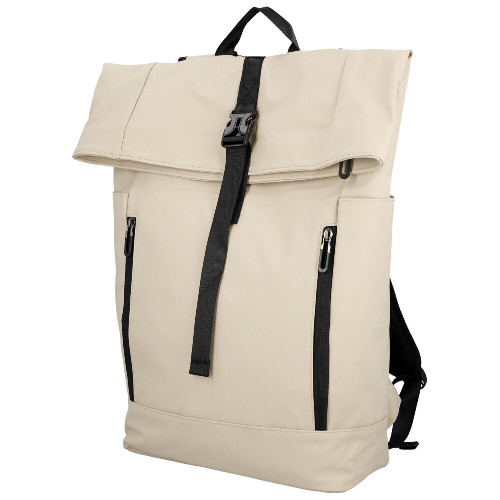 Moderný študentský batoh zo syntetického pogumovaného materiálu, ktorý zaujme štýlovým mestským designom aj vysokou praktickosťou. Trendy farebné prevedenie skvele dopĺňajú čierne detaily, ktoré batohu dodávajú výrazný a súčasný vzhľad. Hlavné vrecko so zapínaním na zips ponúka dostatok priestoru na učebnice aj každodenné nevyhnutnosti. Vnútri nechýbajú praktické vrecká v podšívke. Vrchnú časť je možné jednoducho zrolovať a zaistiť prackou, čo dodáva batohu moderný urban štýl a zároveň možnosť prispôsobiť objem podľa potreby. Prednú stranu zdobia dve výrazné zvislé zipsové vrecká pre rýchly prístup. Po stranách sa nachádzajú dve otvorené vrecká ideálne na fľašu alebo ďalšie drobnosti. Pohodlie pri nosení zaisťujú vypolstrovaný chrbát, nastaviteľné ramenné popruhy a pevné horné ucho pre ľahké prenášanie. Skvelá voľba do školy, mesta aj na voľný čas. Objednajte ešte dnes a vyskúšajte, vrátiť ho môžete až do 30 dní!